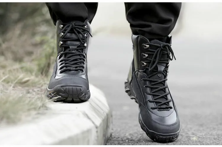 Men Combat Boots Leather Lace Up Waterproof Ankle Tactical Boot Man Plus Big Size Work Shoes Mens