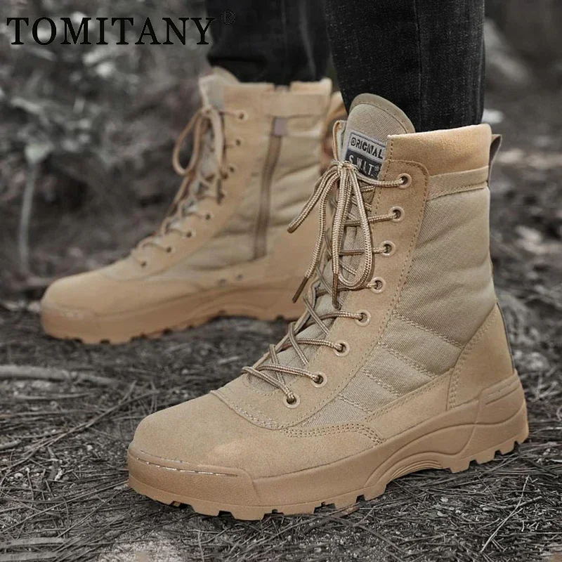 Botas tácticas al aire libre para hombre, botas de combate de fuerza especial para el desierto, botas de senderismo, botines, zapatos de seguridad para el trabajo para hombre