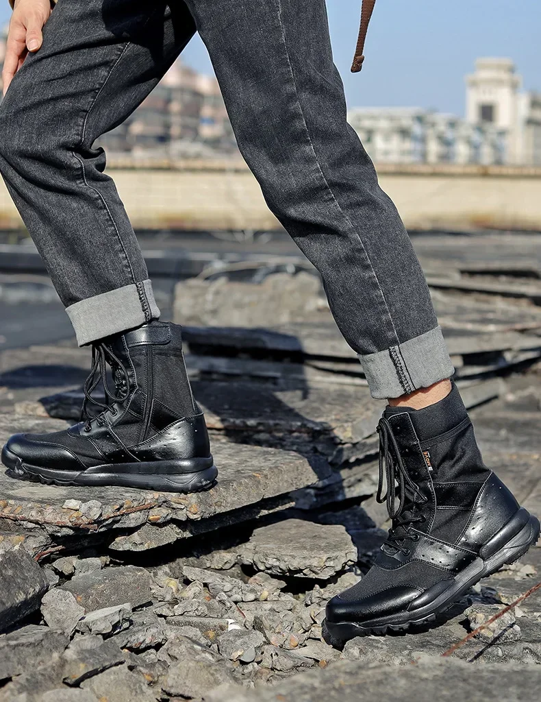 Botas de entrenamiento de combate para verano, zapatos de trabajo ligeros de malla transpirable, botas tácticas militares, Botas de senderismo al aire libre de talla grande 34-49