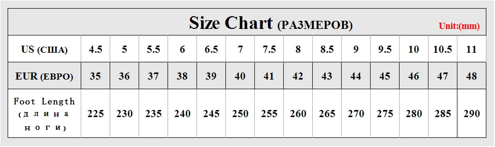 4. Enviamos los zapatos por tamaño de la UE, elija la talla siguiendo la longitud de su pie.