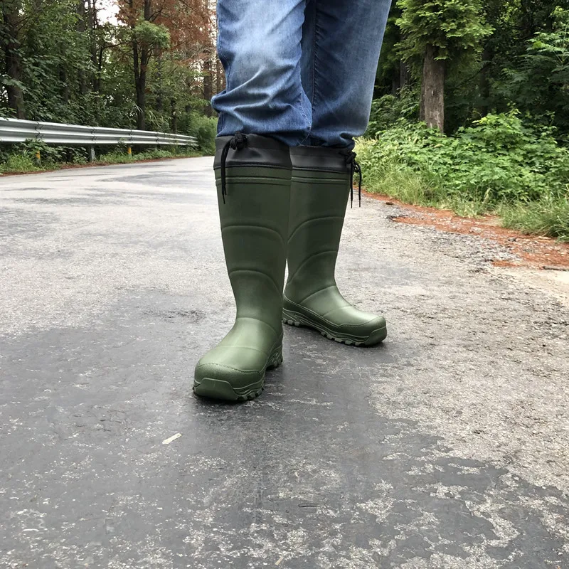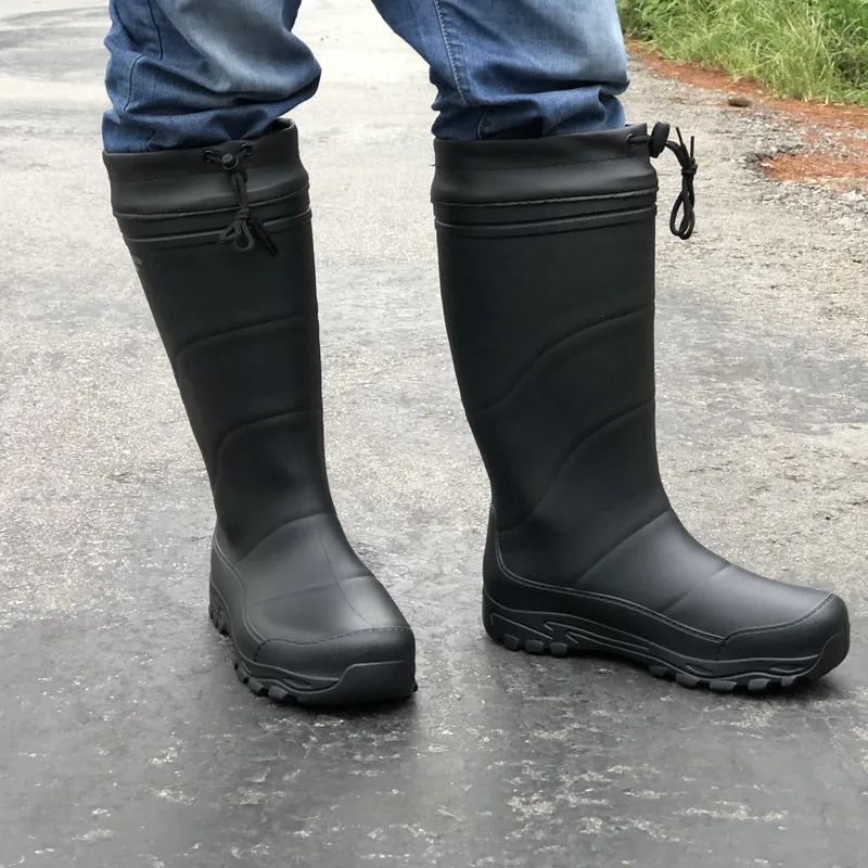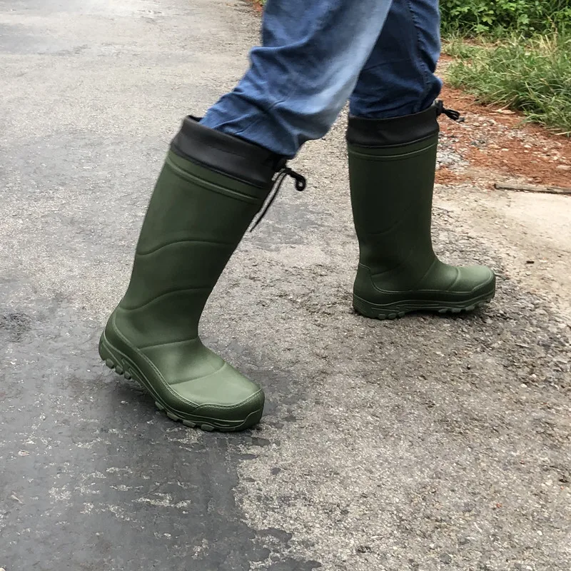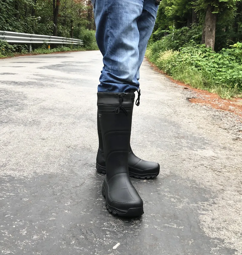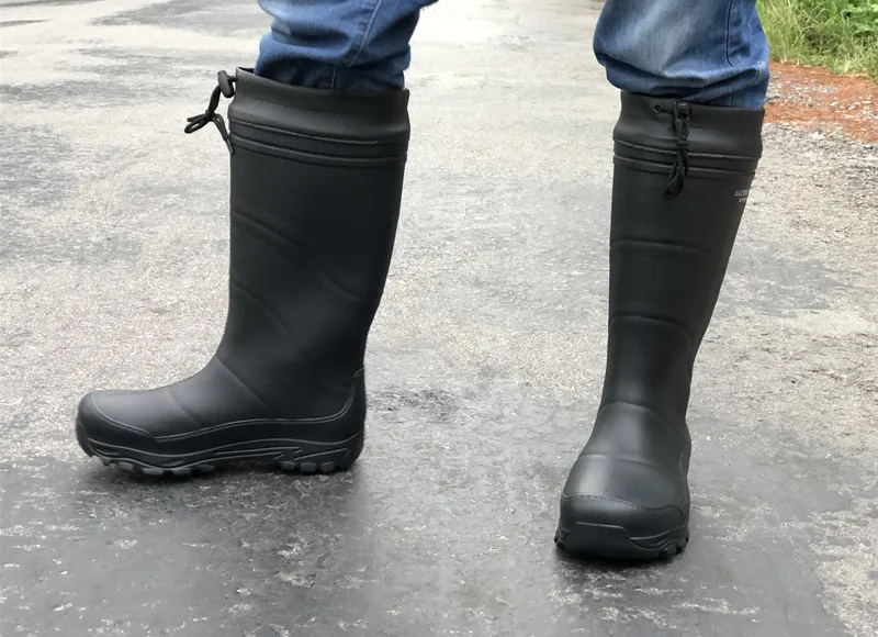 Botas de lluvia de espuma ligeras, botas impermeables de pesca de fondo grueso, zapatos para vadear, botas de nieve cálidas antideslizantes para Otoño e Invierno