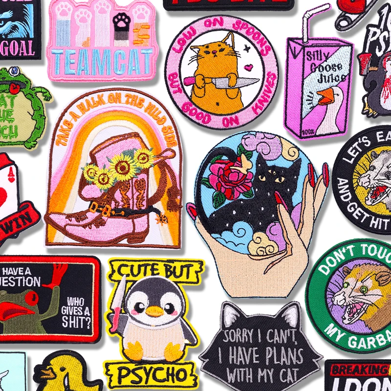 Parche de animales, parches bordados para ropa, parche de dibujos animados/letras punk, parches de hierro para ropa, chaqueta de rana de gato, insignias de costura
