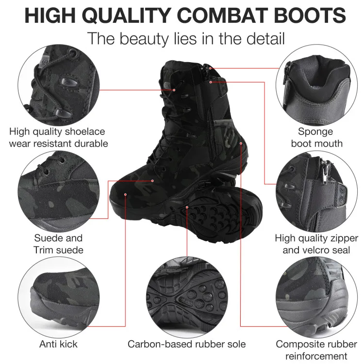 Comprar Botas militares de combate para hombre, botines de camuflaje tácticos de talla grande, zapatos de seguridad para el trabajo, motocicleta