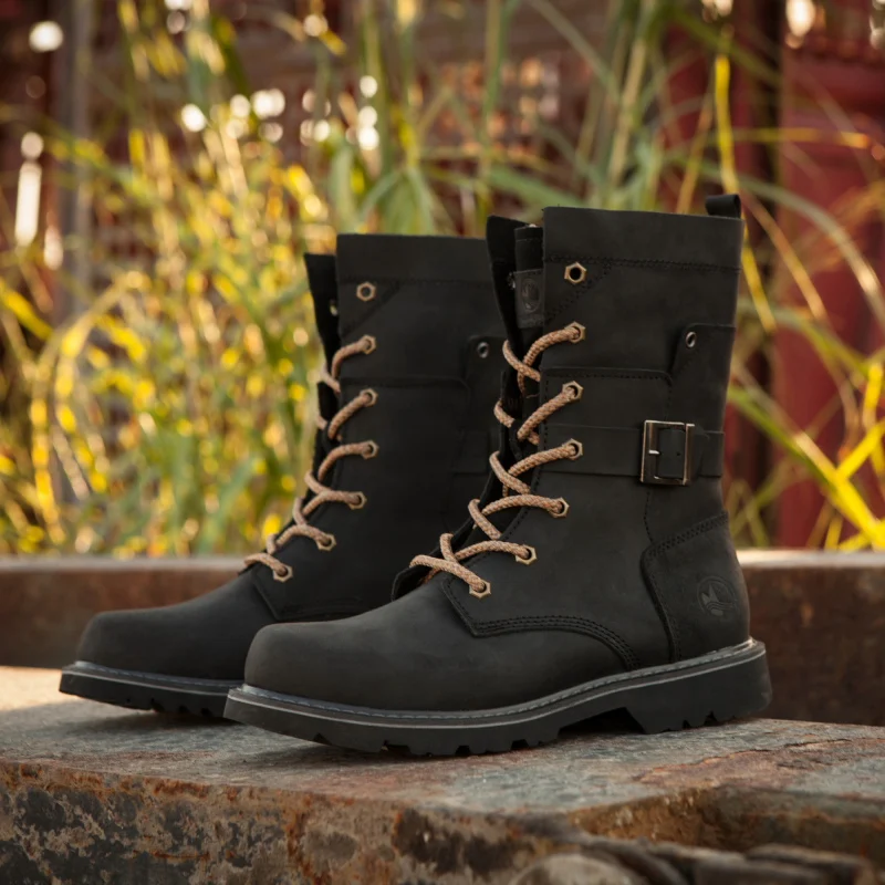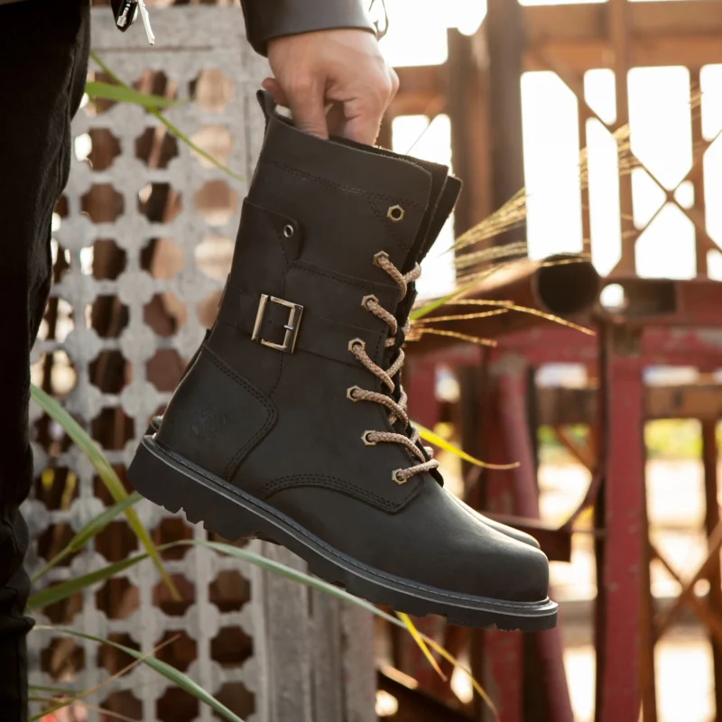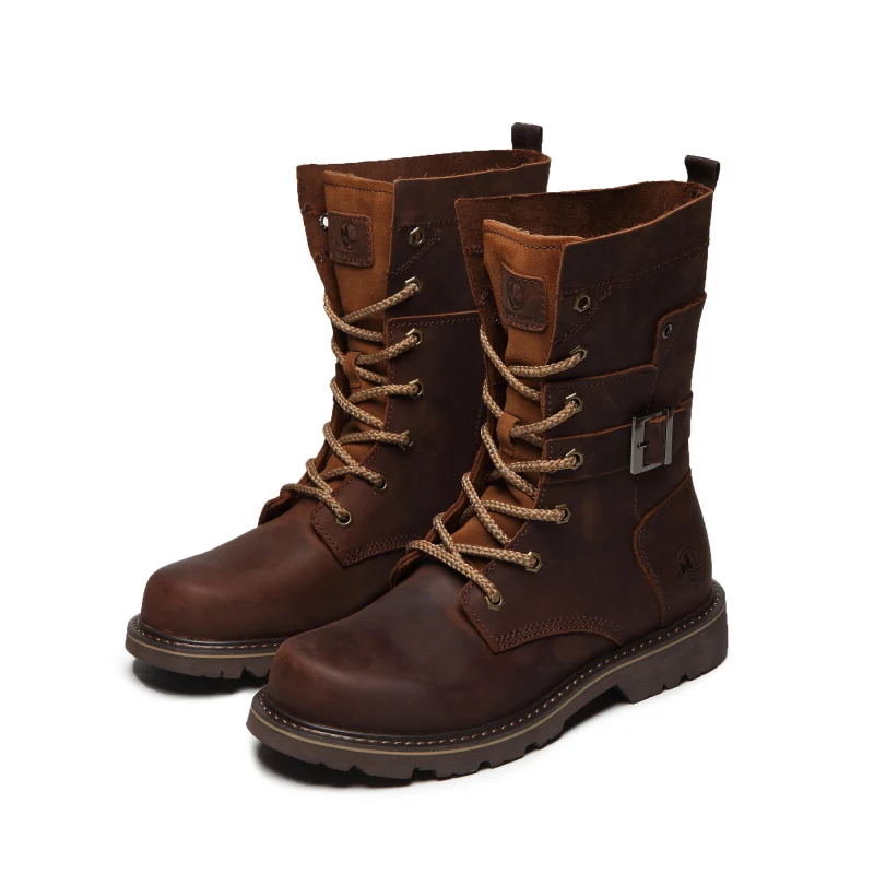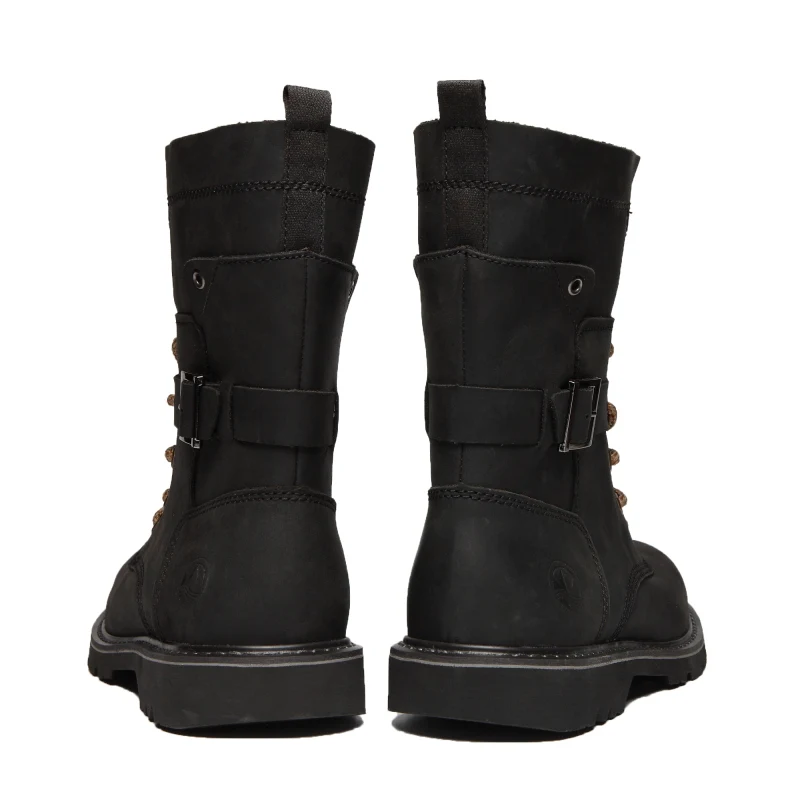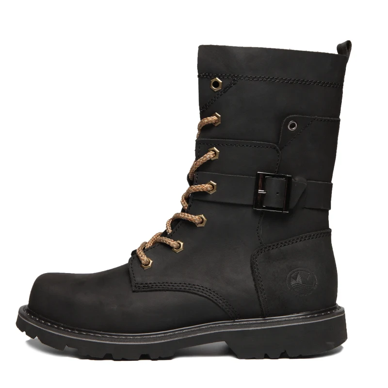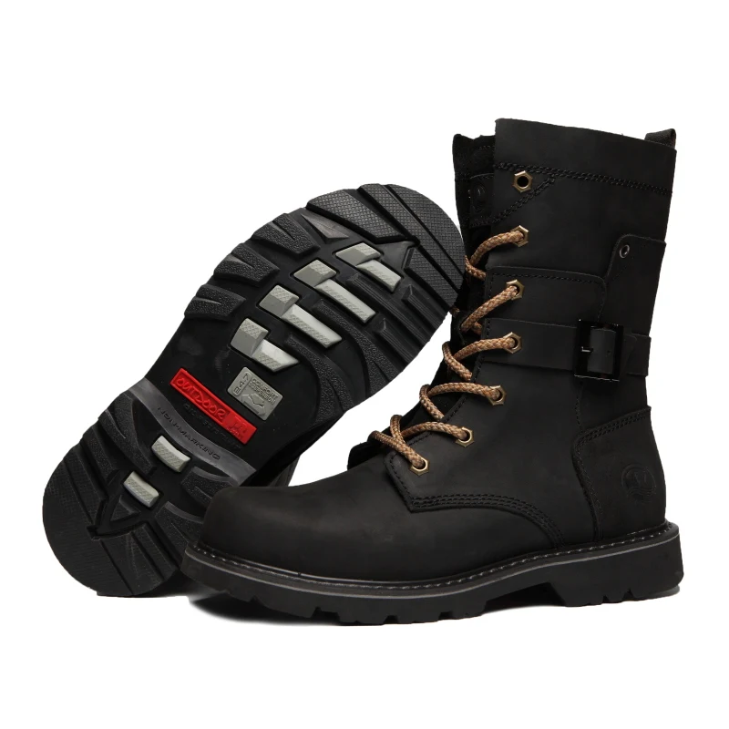 Botas de moto de cuero de vaca para hombre, botas de combate de trekking de alta calidad, botas Punk con cinturón gótico, zapatillas tácticas para ciclismo y senderismo