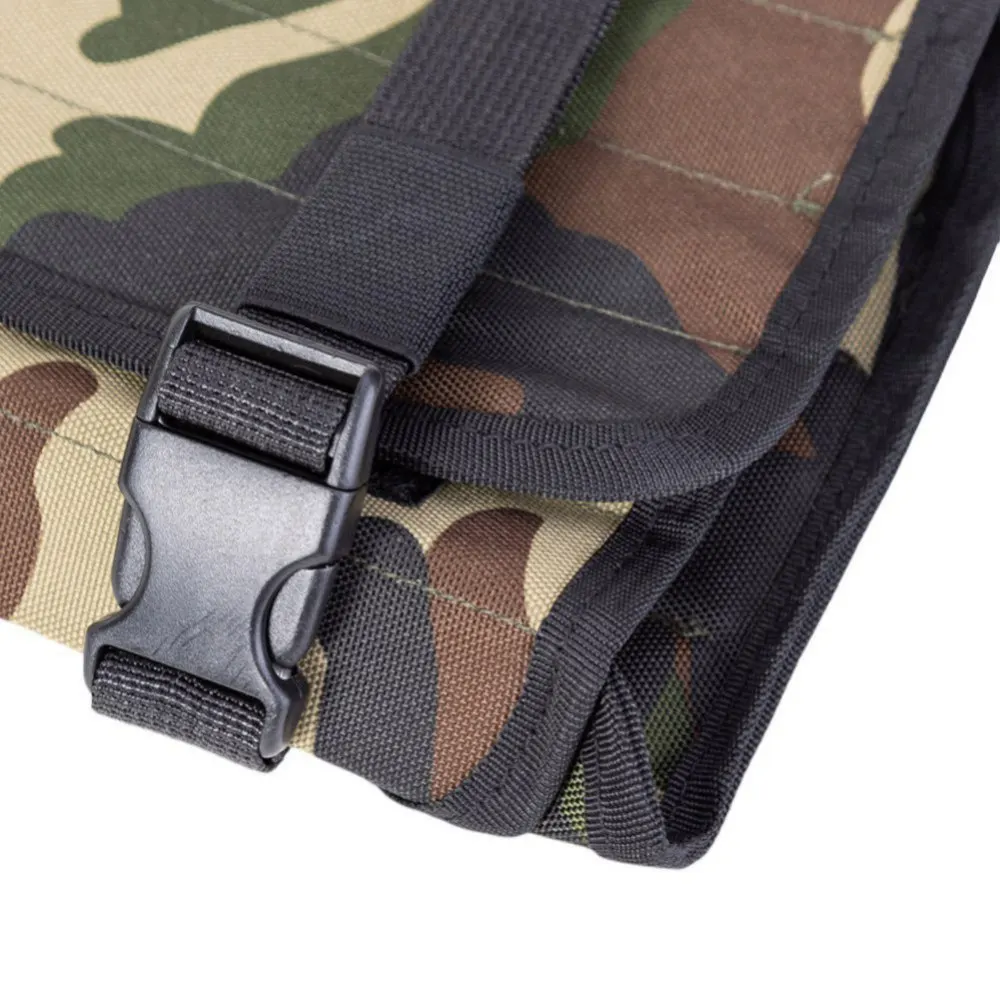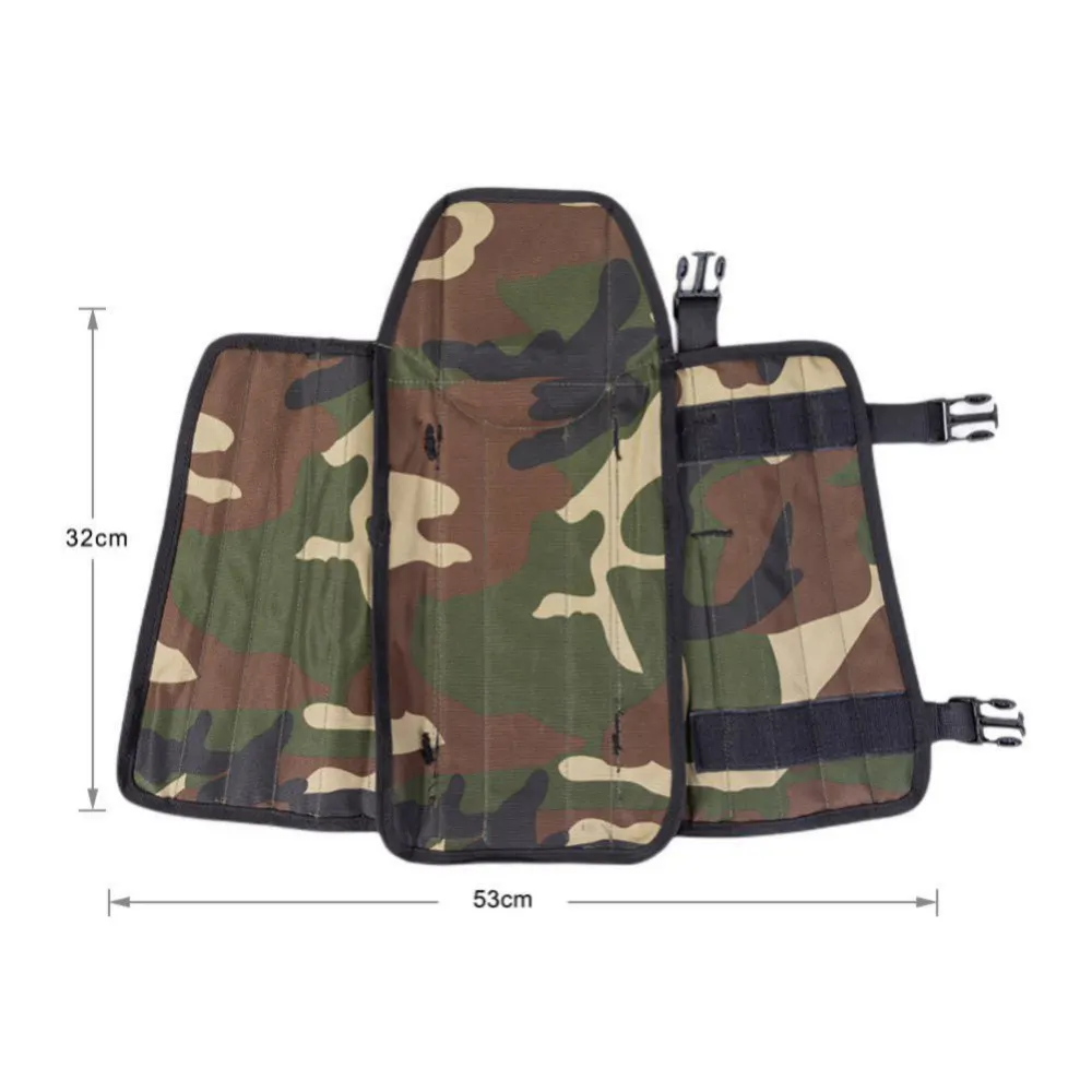 Especificaciones: · Tamaño: 44cm de alto/53cm de ancho · Color: verde, Camuflaje · Material: tela Oxford + tablero de PP