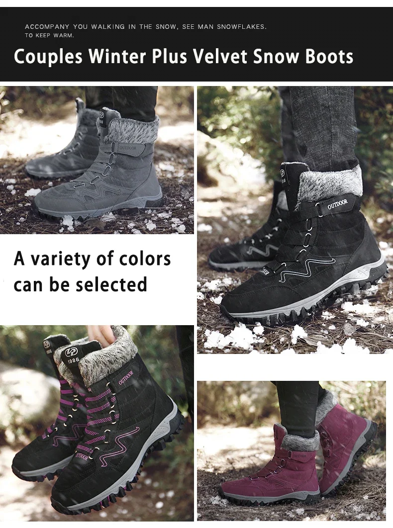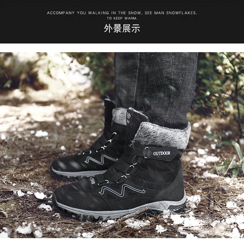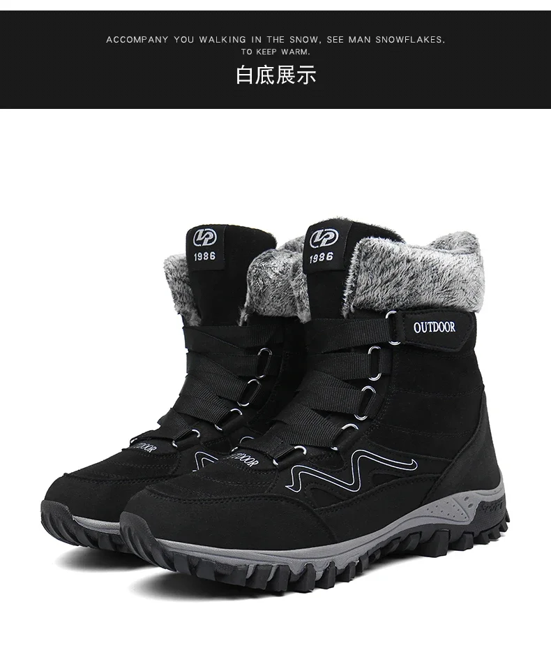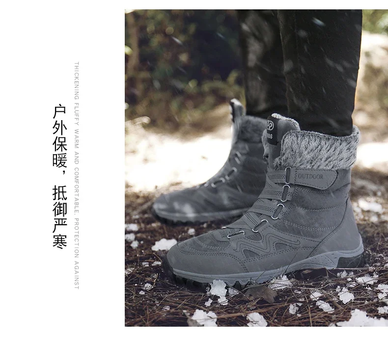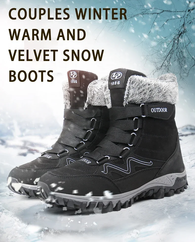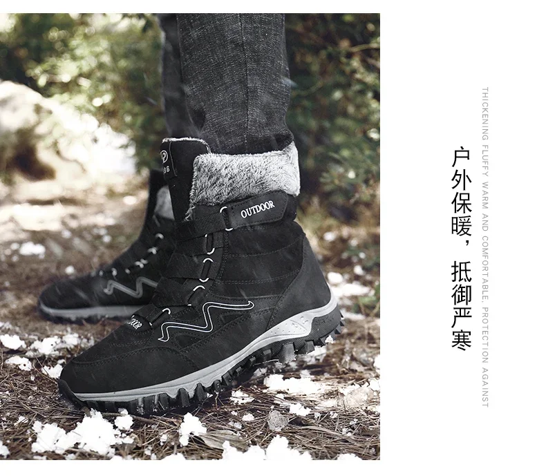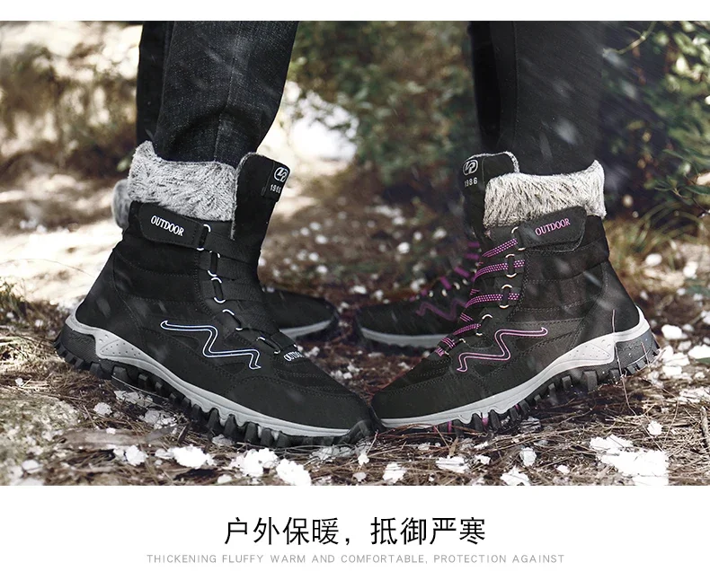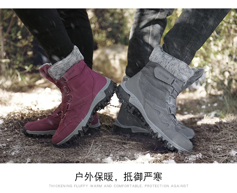 Botas de nieve de felpa de marca para hombre, botas de senderismo impermeables de alta calidad cálidas para invierno y exteriores, zapatos de trabajo impermeables antideslizantes para parejas y mujeres