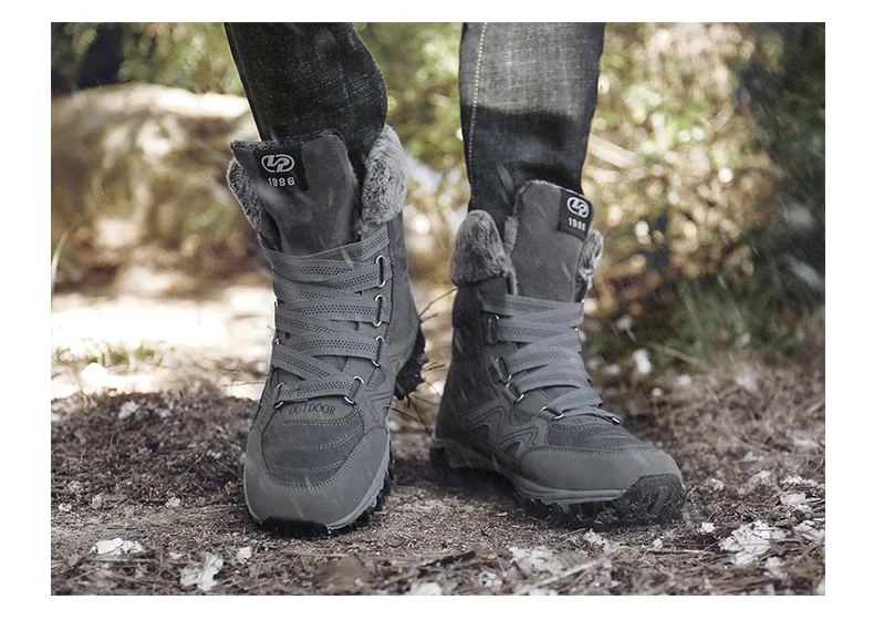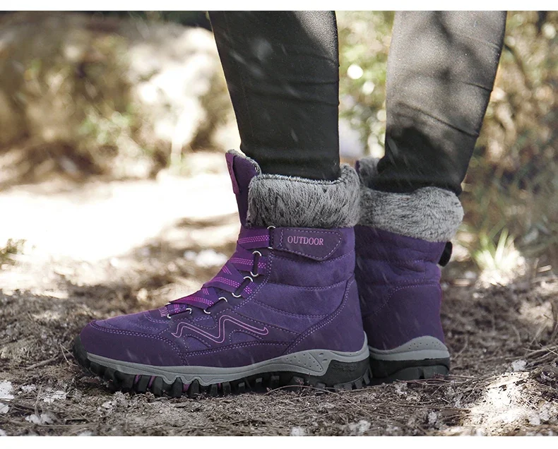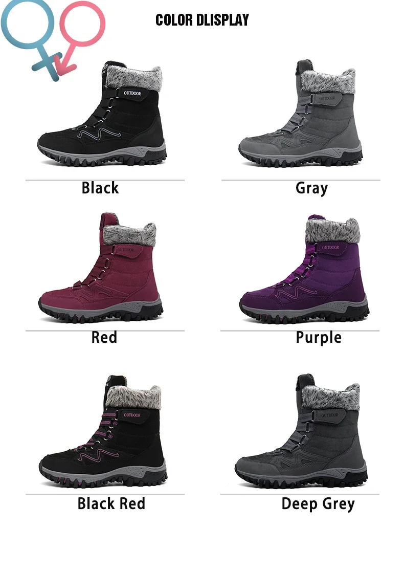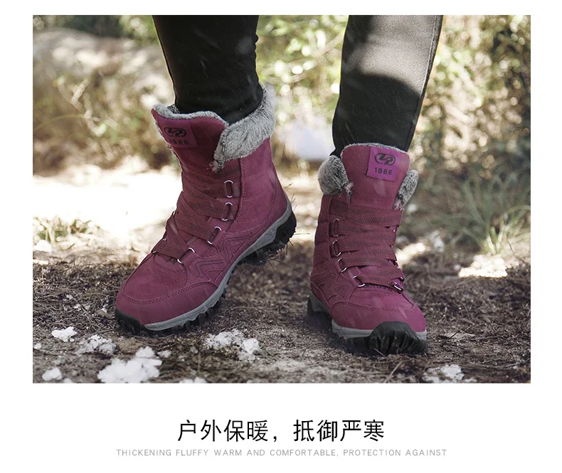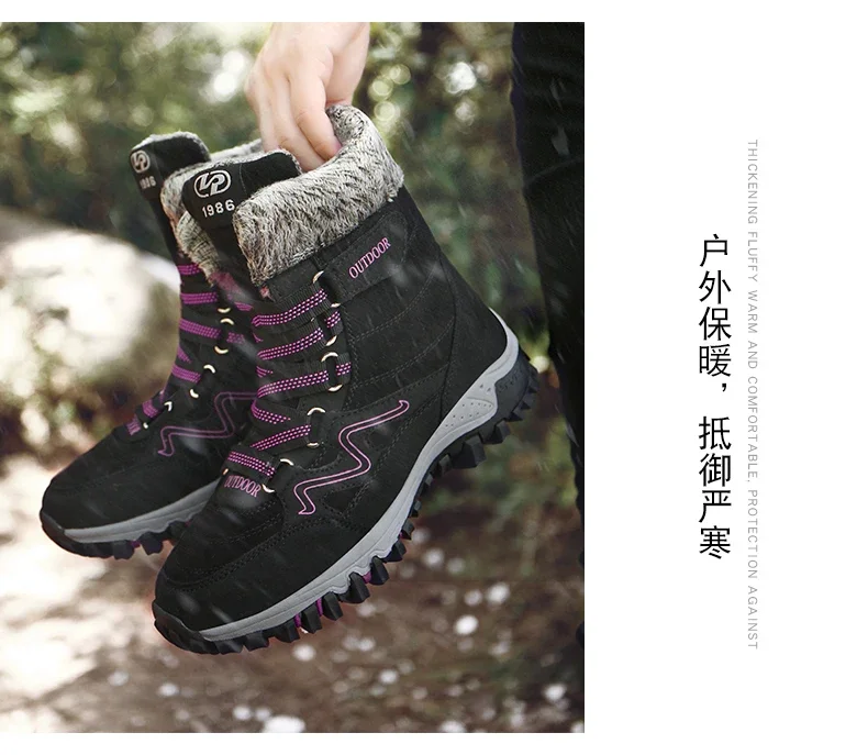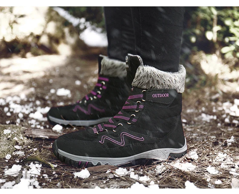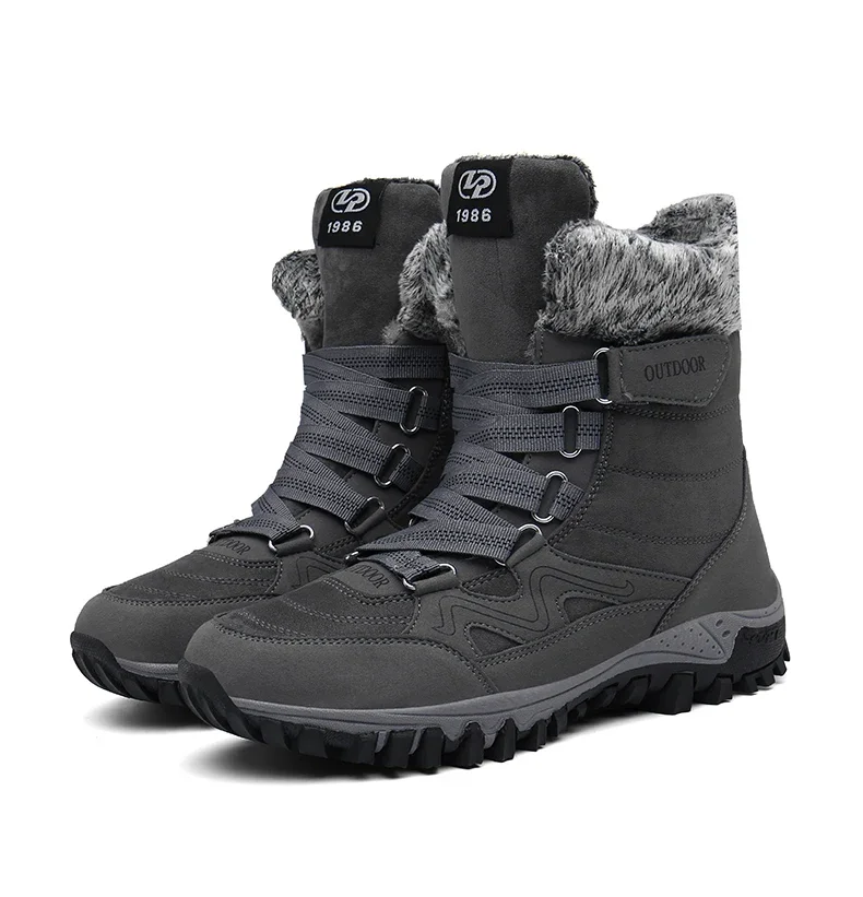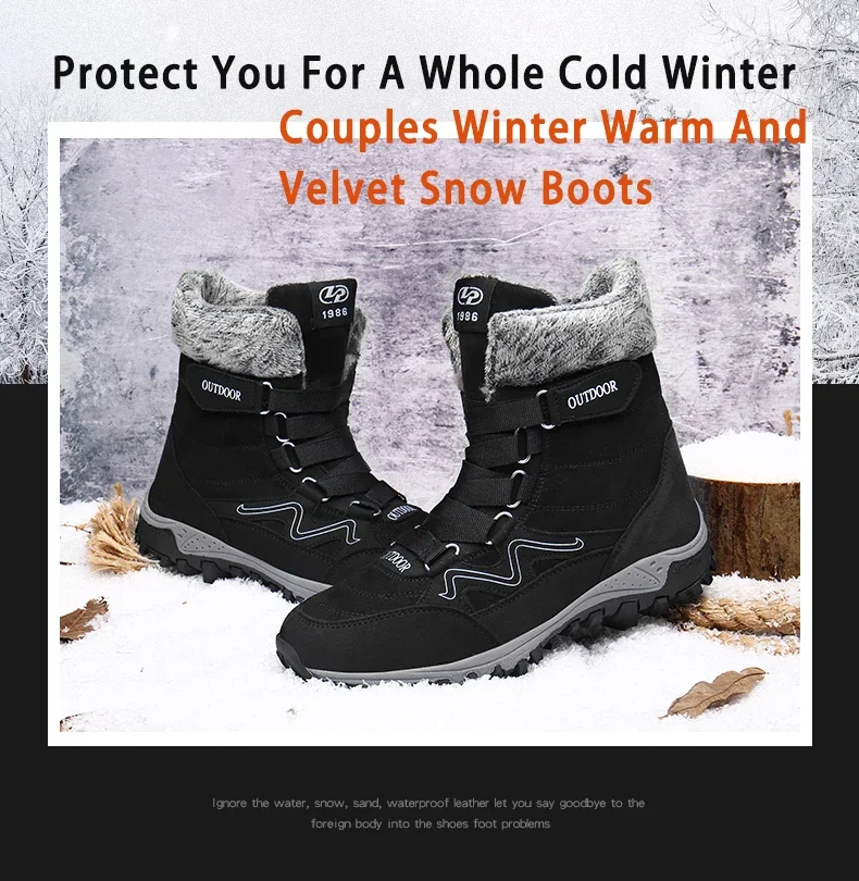 Botas de nieve de felpa de marca para hombre, botas de senderismo impermeables de alta calidad cálidas para invierno y exteriores, zapatos de trabajo impermeables antideslizantes para parejas y mujeres