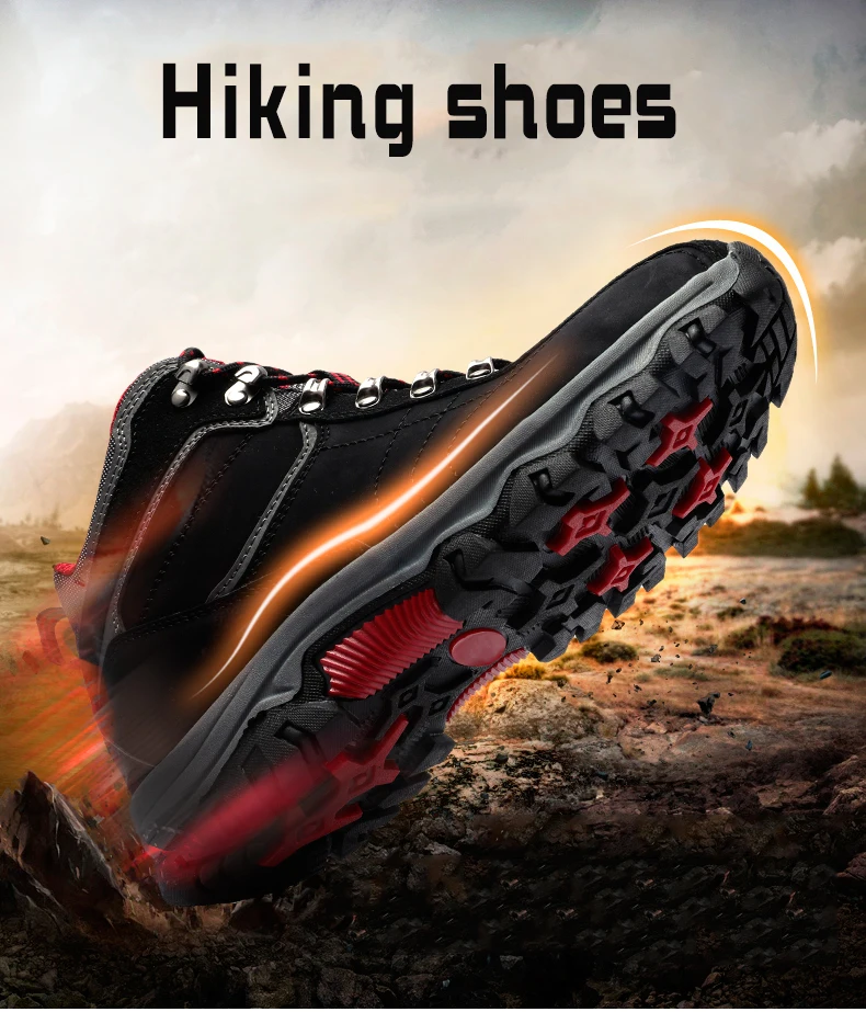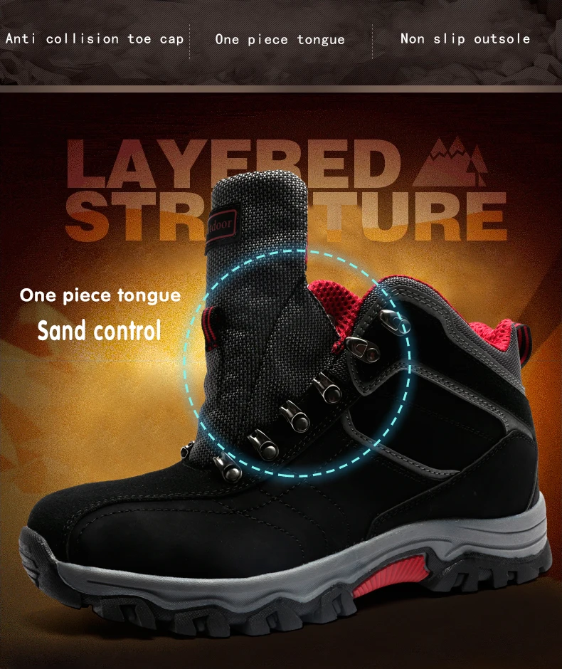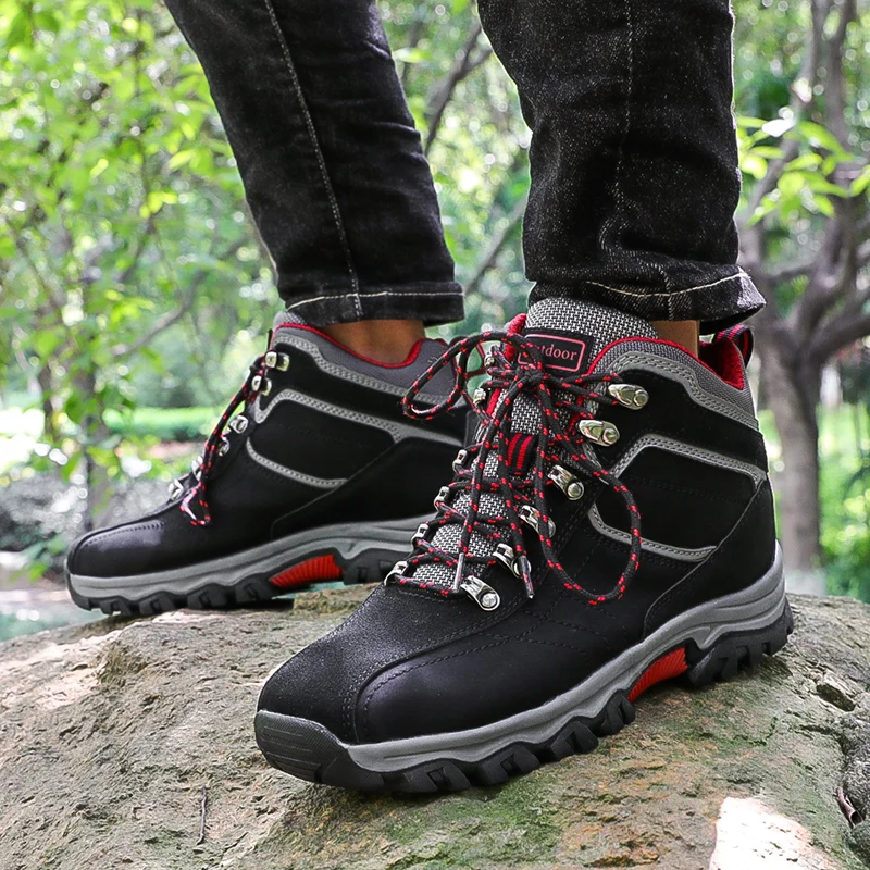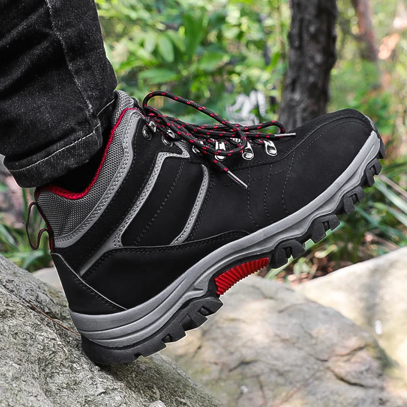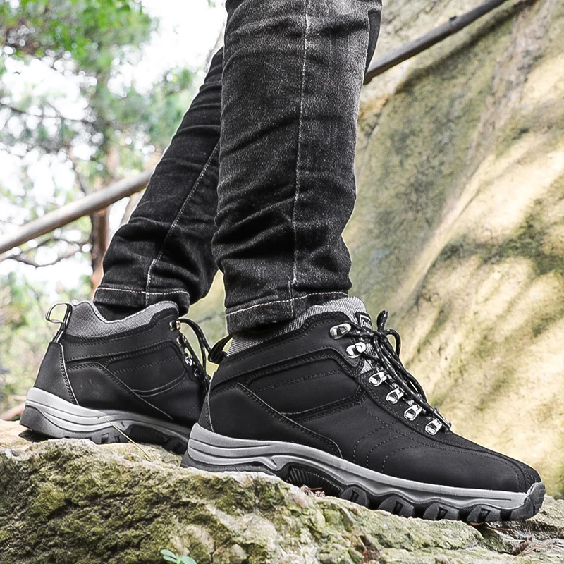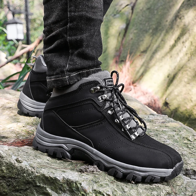 HIKEUP Botas de nieve Botas de trekking al aire libre de gamuza Escalada de montaña Zapatillas turísticas para acampar Zapatos de senderismo de alta calidad Zapatillas de deporte para hombres
