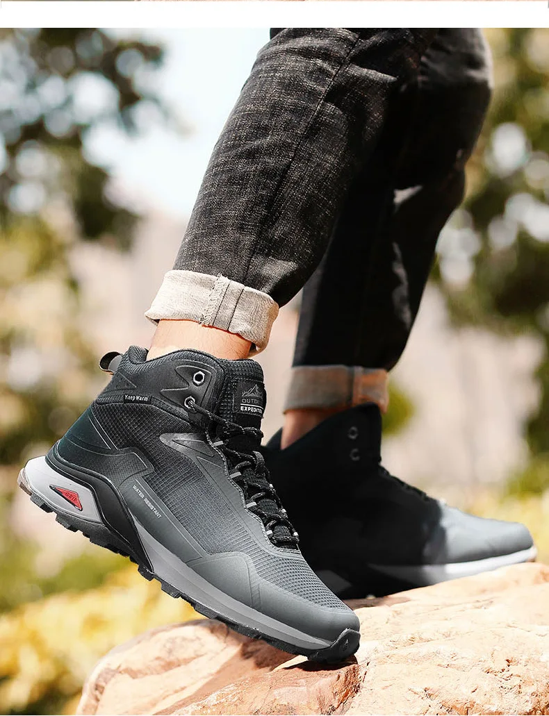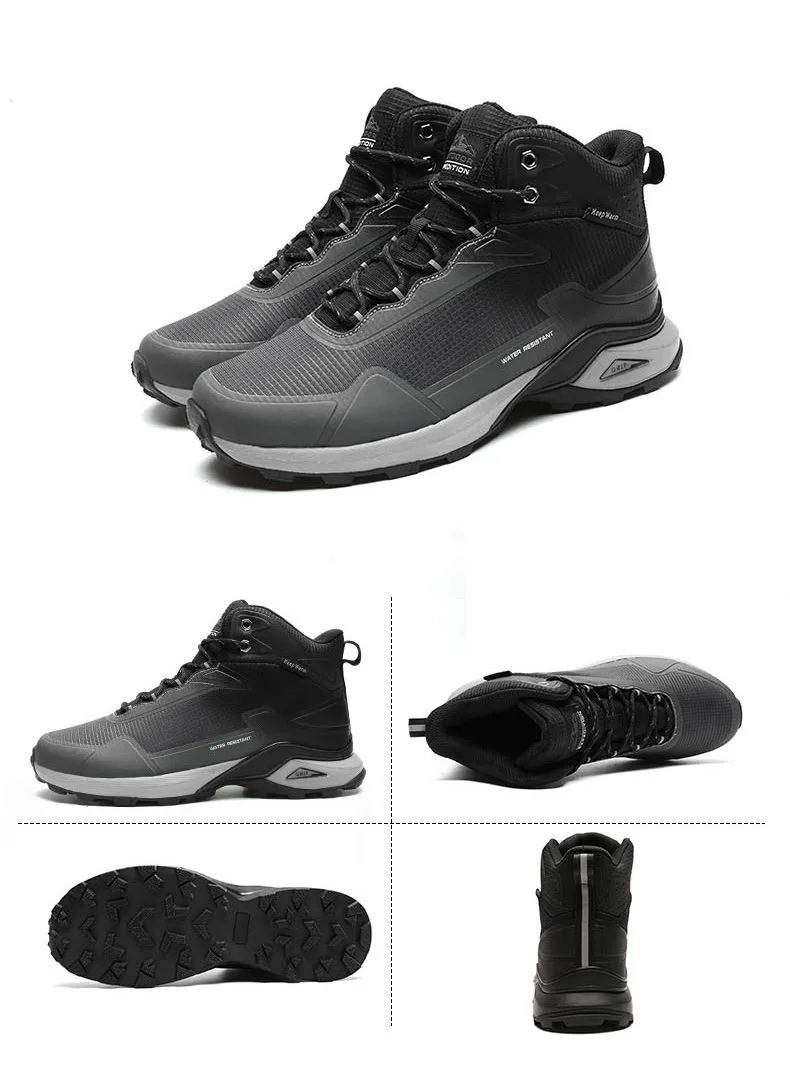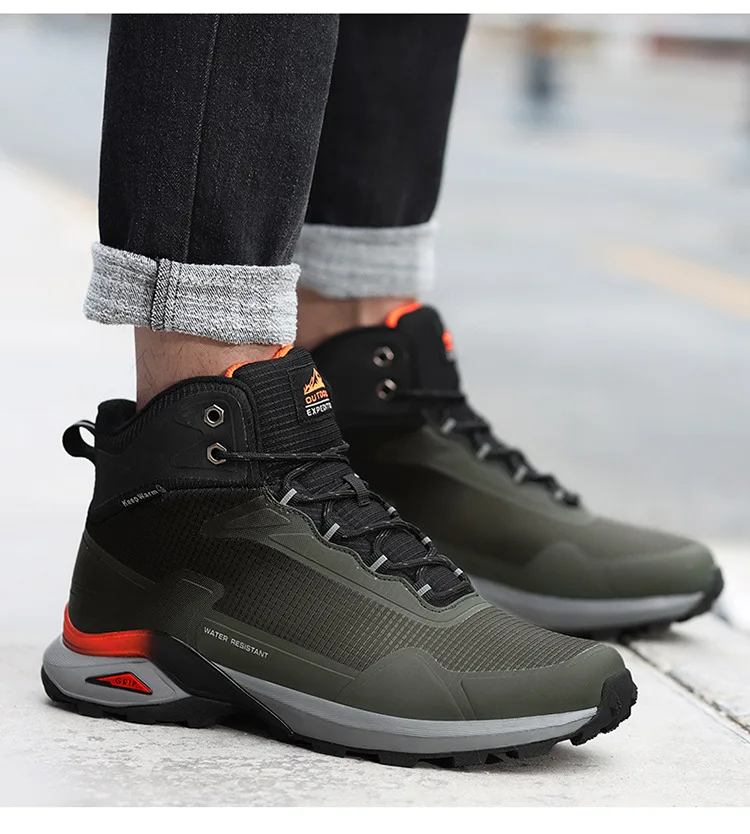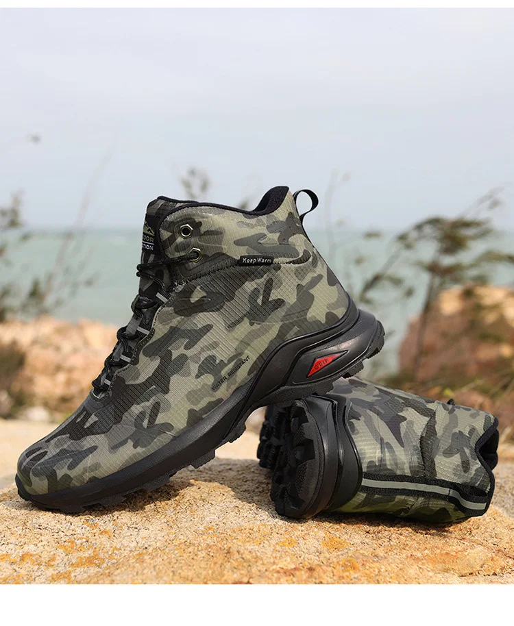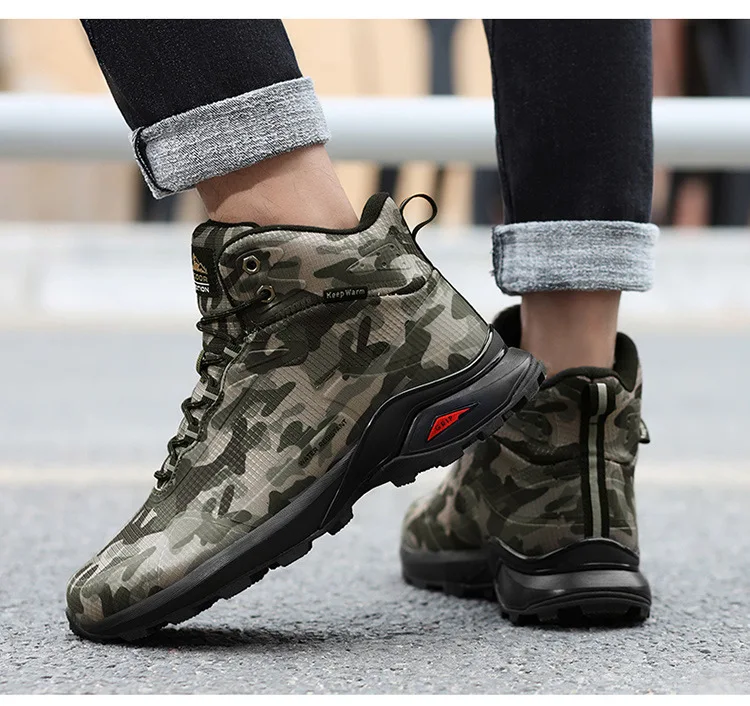 Botas de nieve de invierno 2024 para hombre, Botas de senderismo de camuflaje impermeables para exteriores, zapatos cálidos de algodón de felpa de talla grande