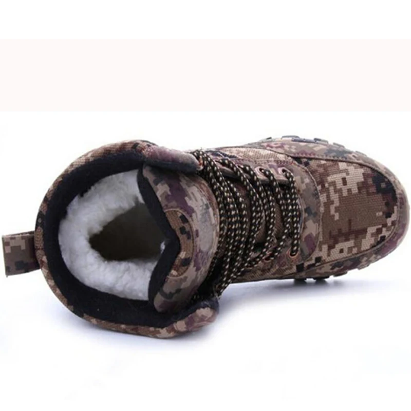 Botas de nieve de invierno para hombre, botas militares de combate para hombre, zapatos cálidos de algodón de alta calidad de camuflaje para invierno, botas de lana de felpa para hombre, talla 39-46