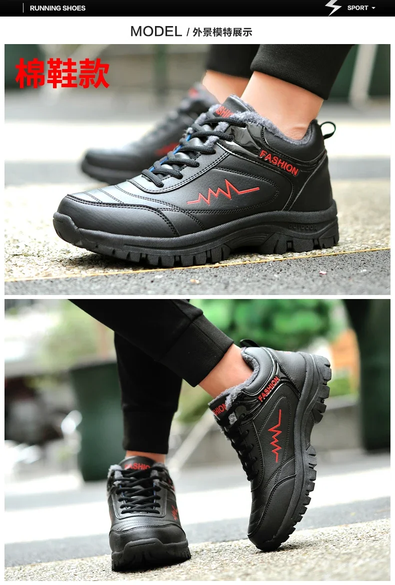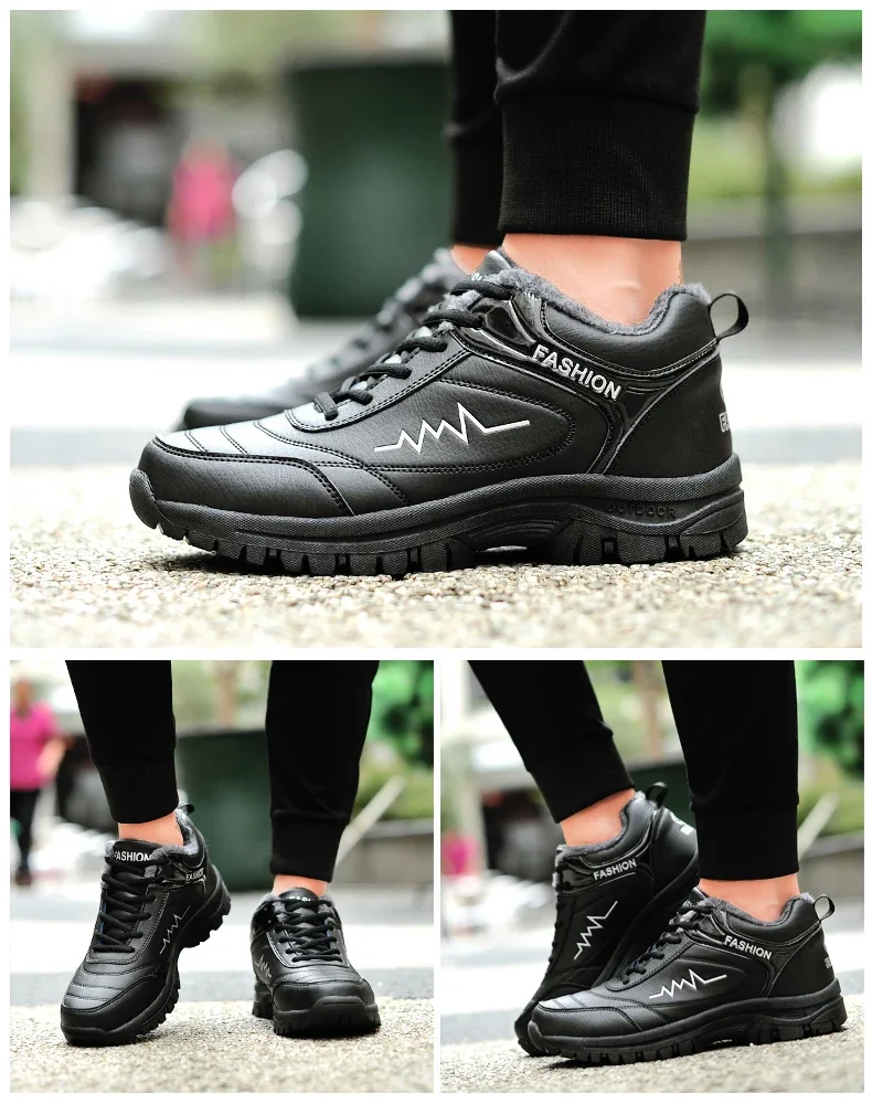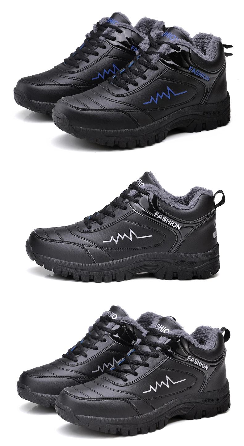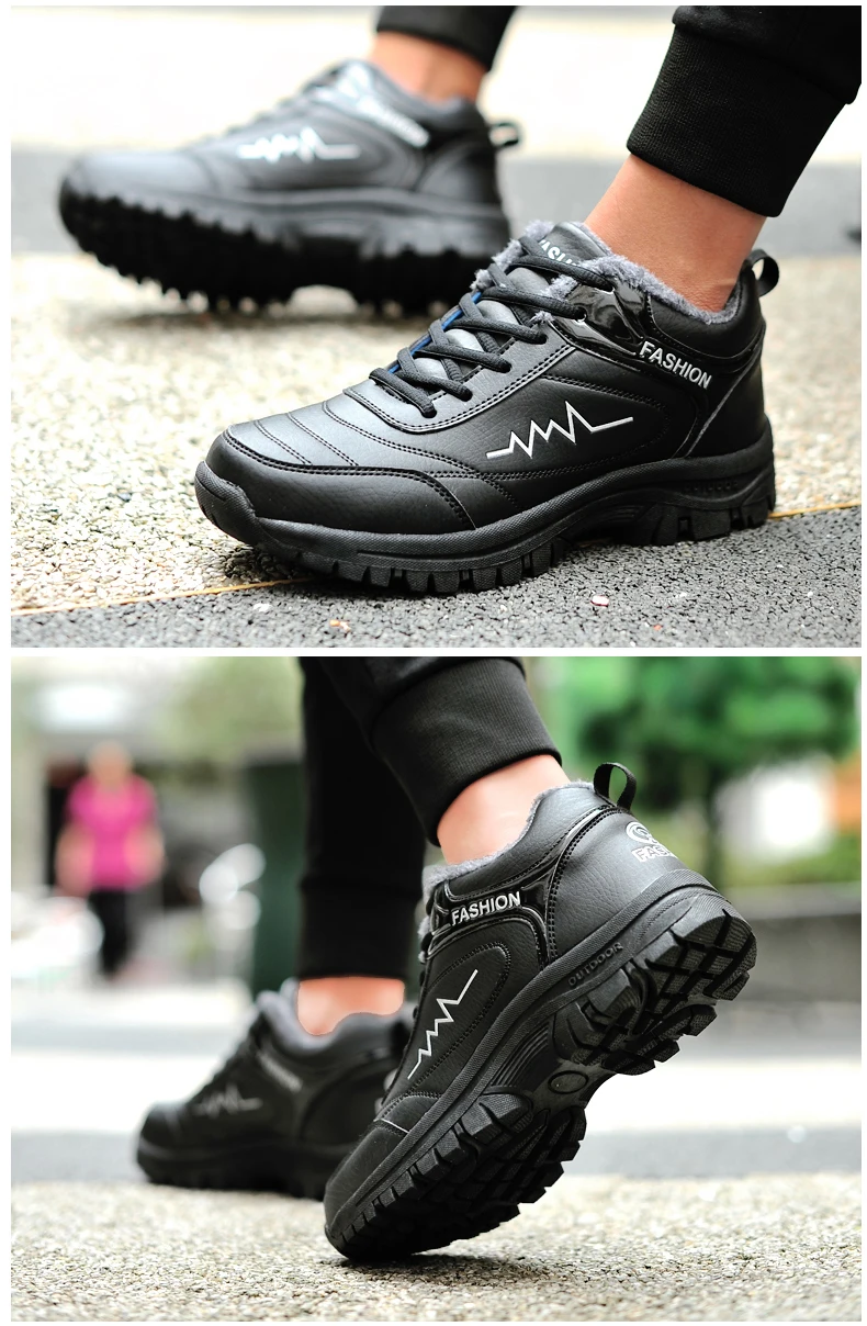 Botas de nieve de invierno para mujer, zapatos de trabajo para hombre, zapatillas de deporte de felpa para mantener el calor, botas de nieve impermeables para hombre, zapatos informales, botas de cuero