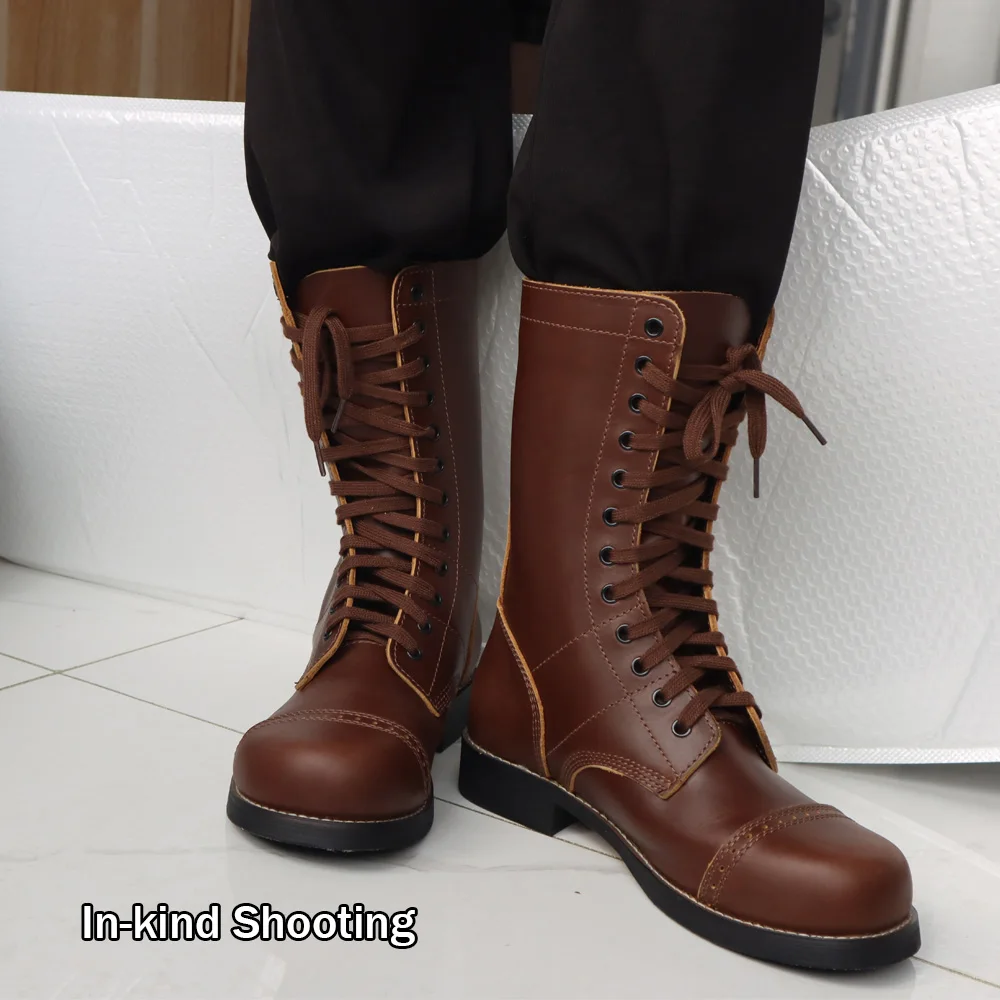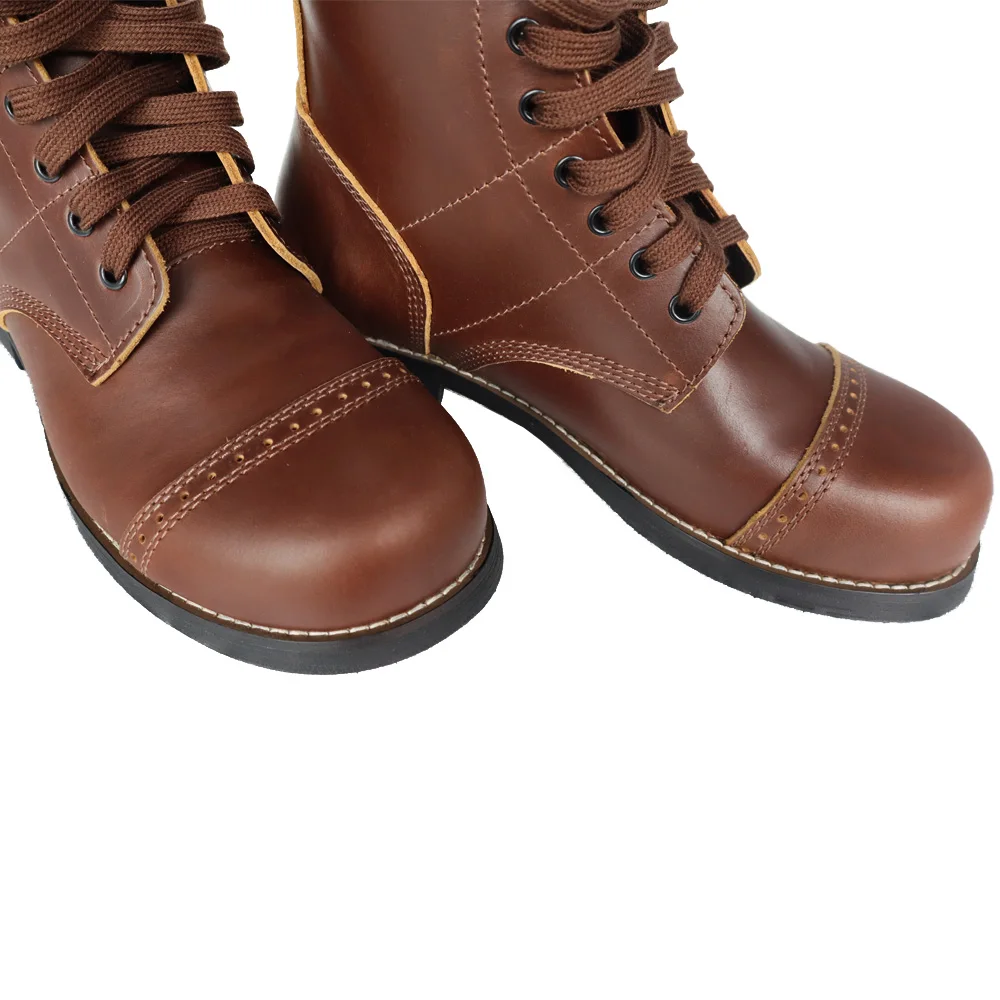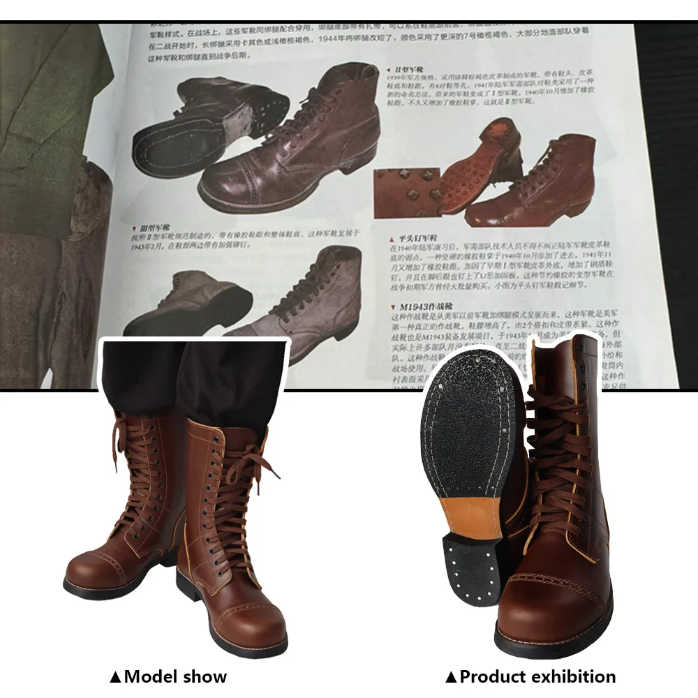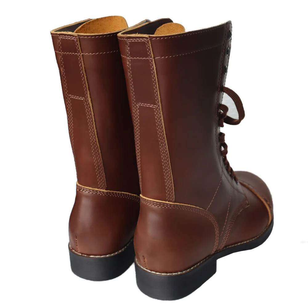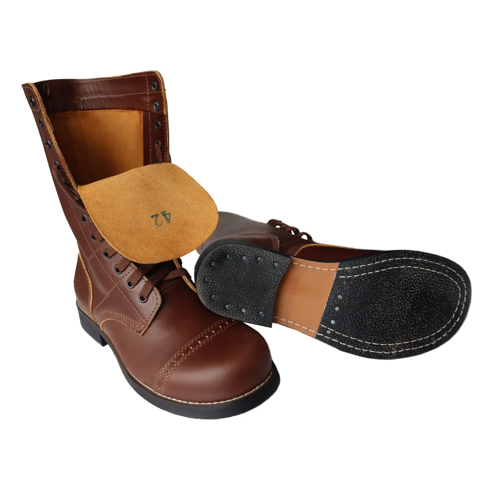 Estos zapatos son botas de paracaidistas retro de la Segunda Guerra Mundial, violetas y oscuras, con muchas suturas cifradas en la parte superior, que pueden garantizar que todo el zapato no se destruya fácilmente.Hay suelas de goma gruesas en la parte inferior de los zapatos, lo que garantiza que los zapatos sean resistentes al desgaste y aumenta la comodidad de los zapatos.Los zapatos son botas rectas que se pueden usar con pantalones sueltos o ajustados.Todo el empeine está hecho de piel de vaca, fuerte y resistente al desgaste, hermosa y hermosa.