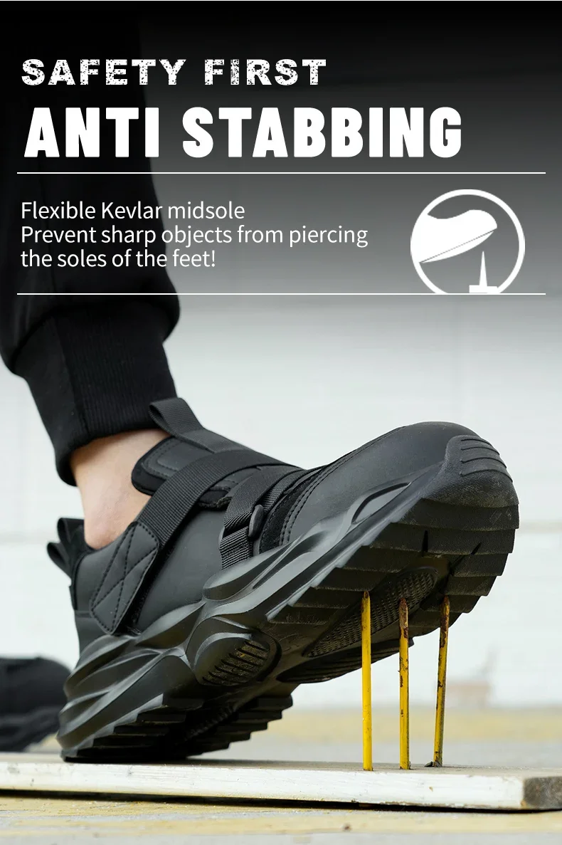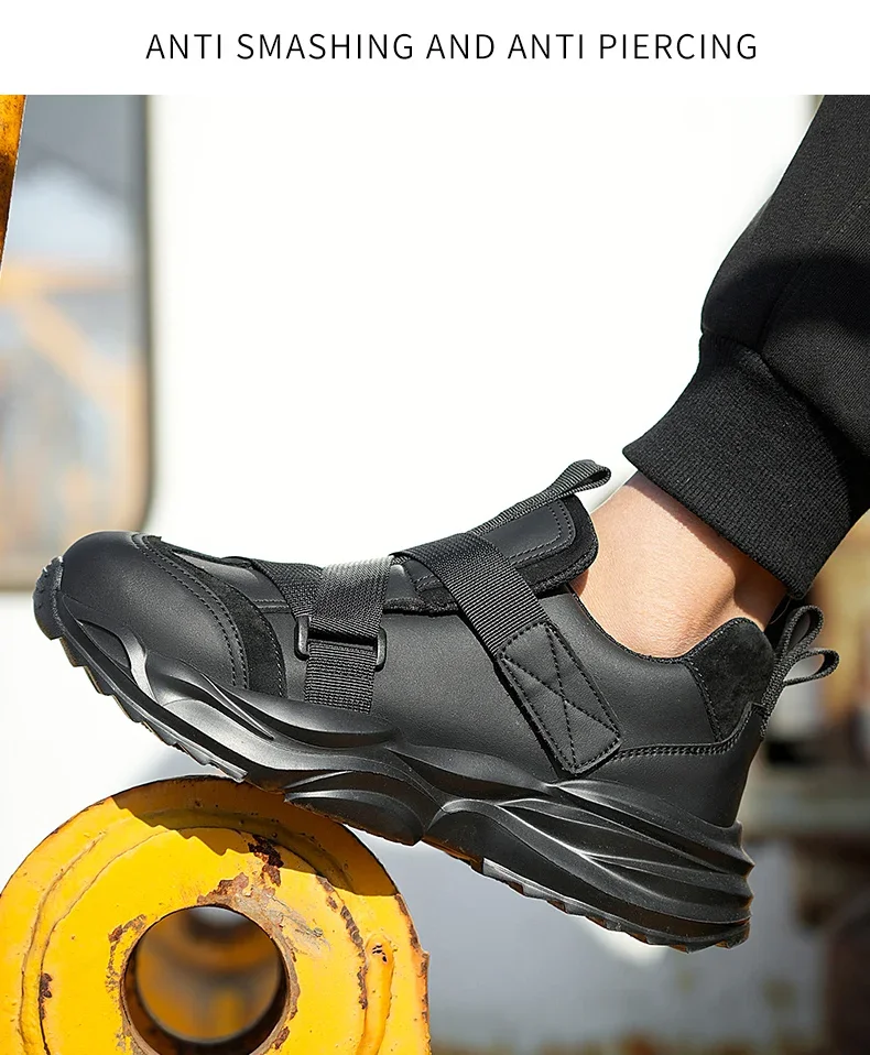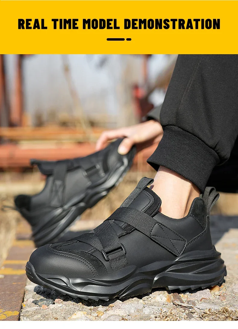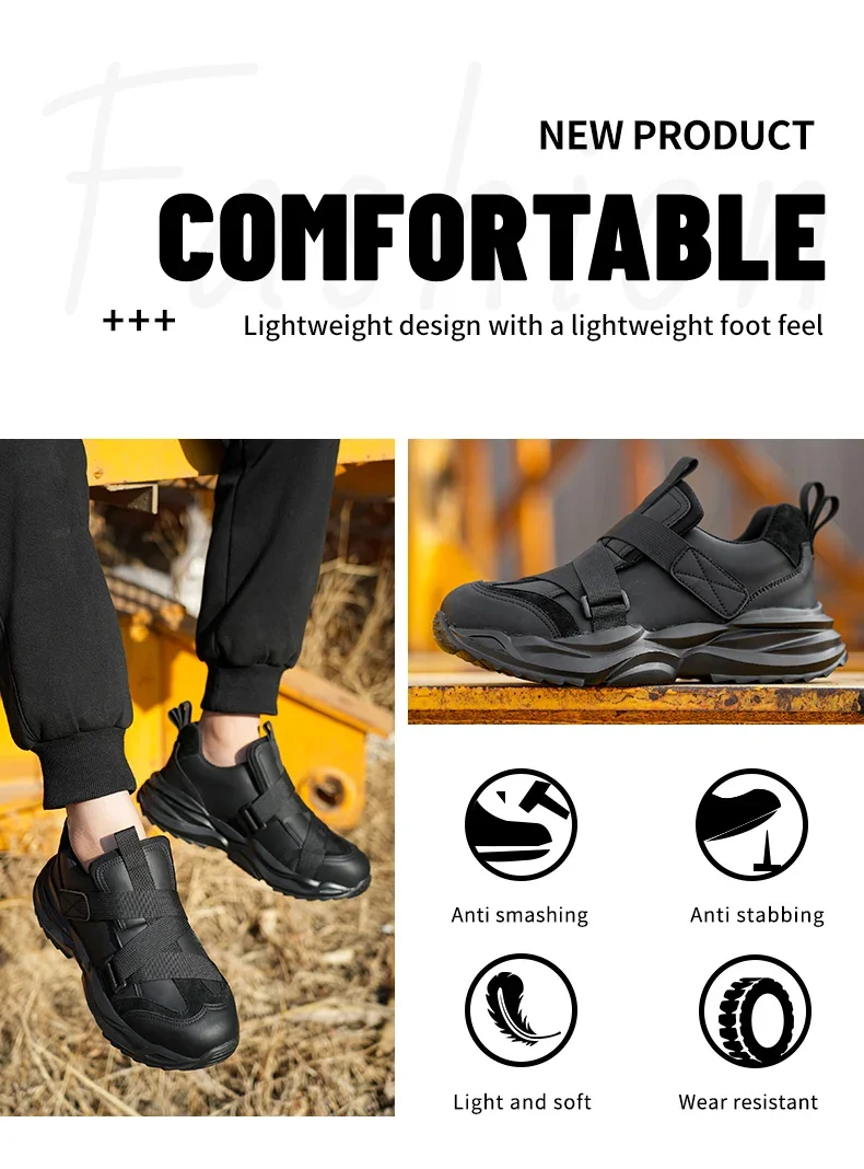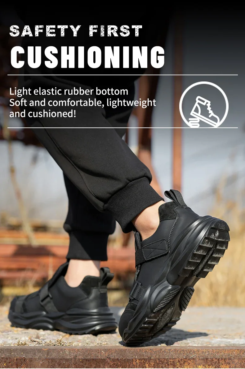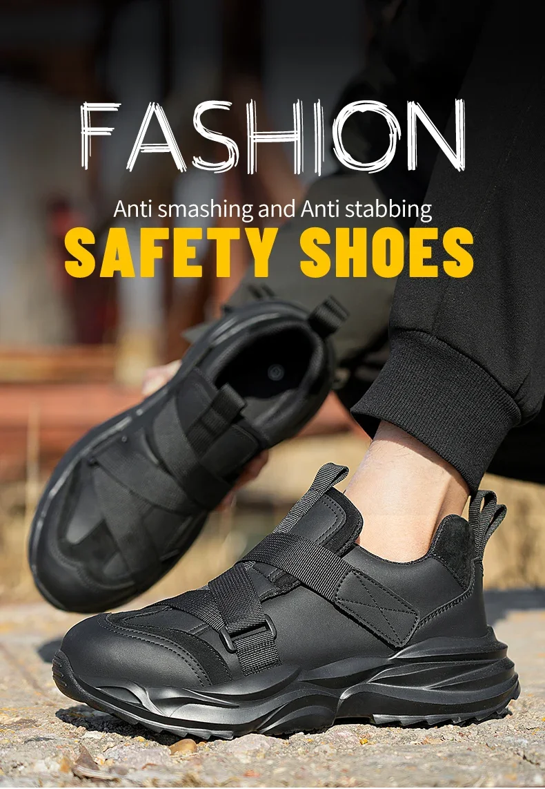 Zapatos de seguridad ligeros de cuero para hombres y mujeres, zapatos de trabajo con punta de acero, zapatillas de deporte para hombres y mujeres, zapatos transpirables, zapatos de construcción, zapatos de seguridad sin encaje