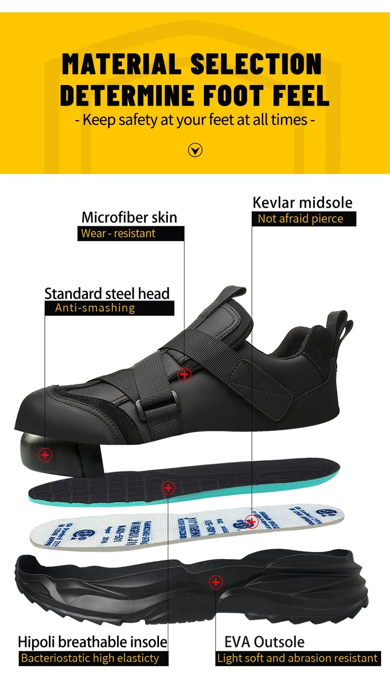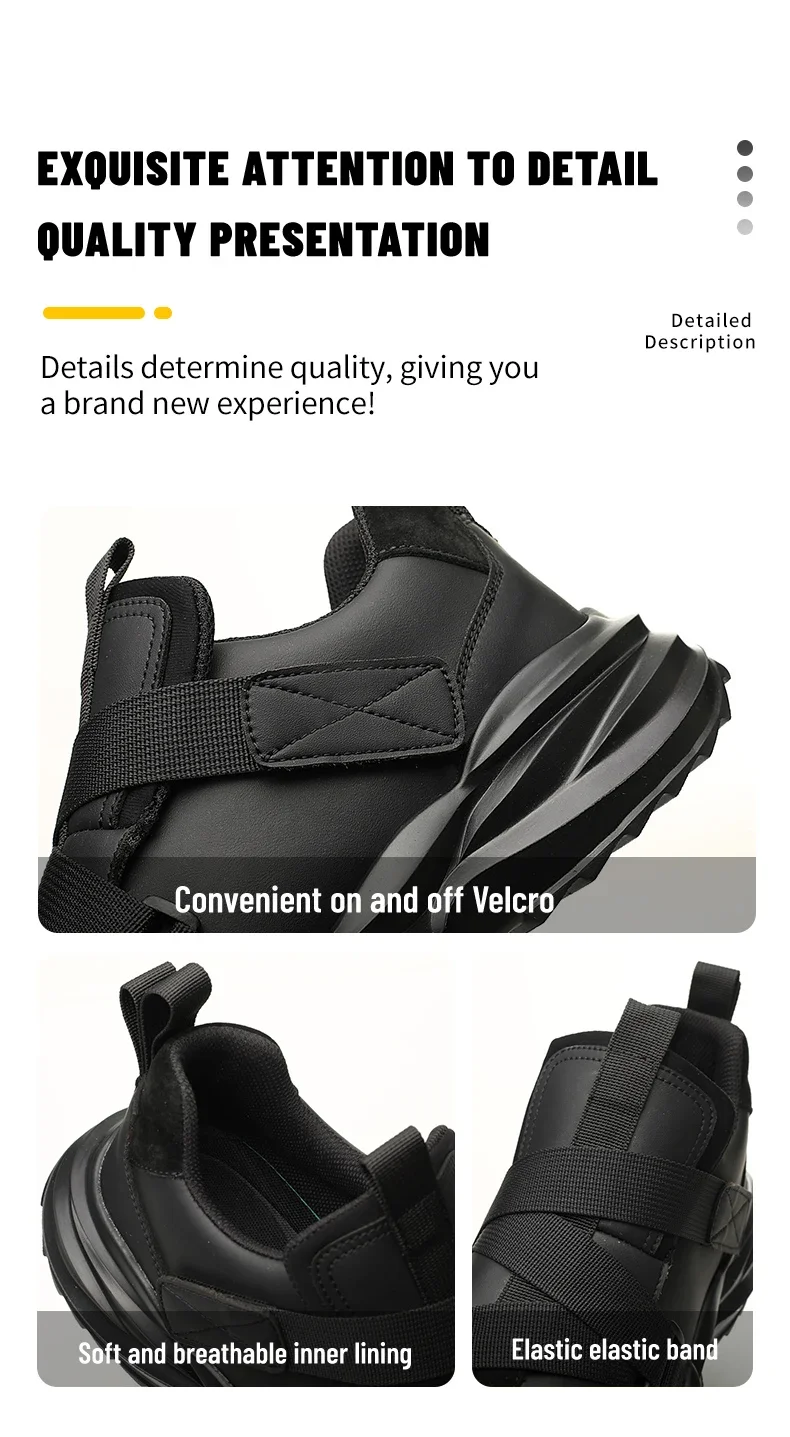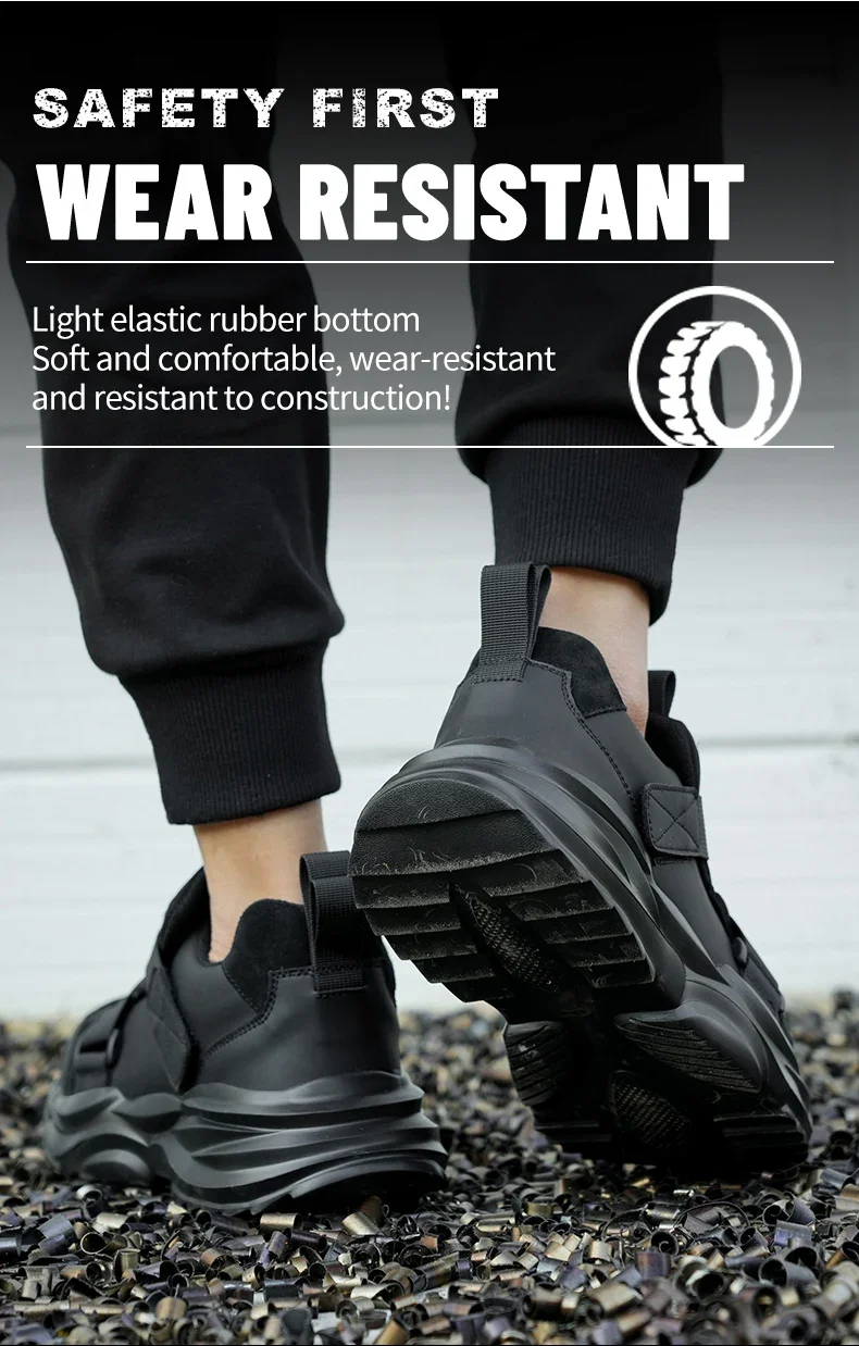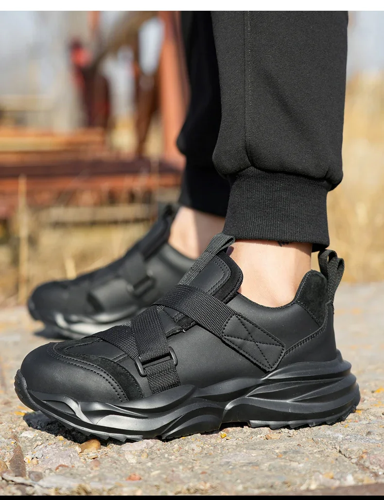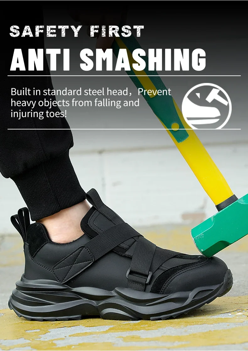 Zapatos de seguridad ligeros de cuero para hombres y mujeres, zapatos de trabajo con punta de acero, zapatillas de deporte para hombres y mujeres, zapatos transpirables, zapatos de construcción, zapatos de seguridad sin encaje