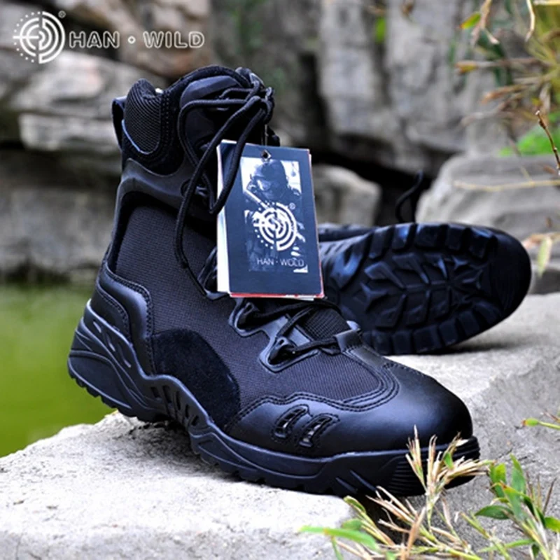 Botas deportivas de cuero tácticas para acampar al aire libre para hombres