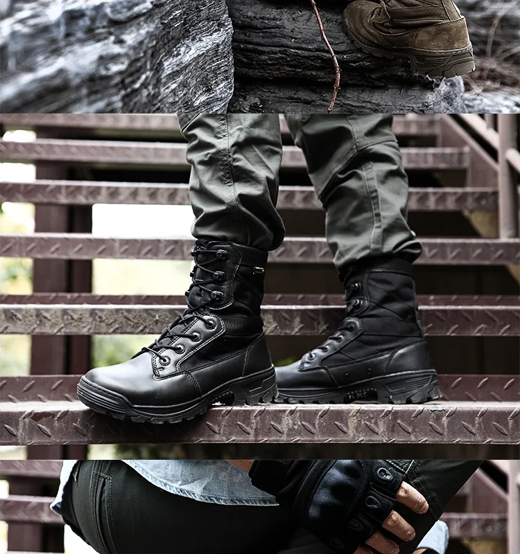 Botas de senderismo de alta calidad para hombre, botas de caza impermeables, botines tácticos de combate en el desierto, zapatillas de deporte de cuero de montaña de alta calidad