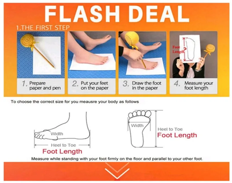 2. Elige una talla más grande si tu pie es ancho o grueso, o contáctanos si no estás seguro de la talla.