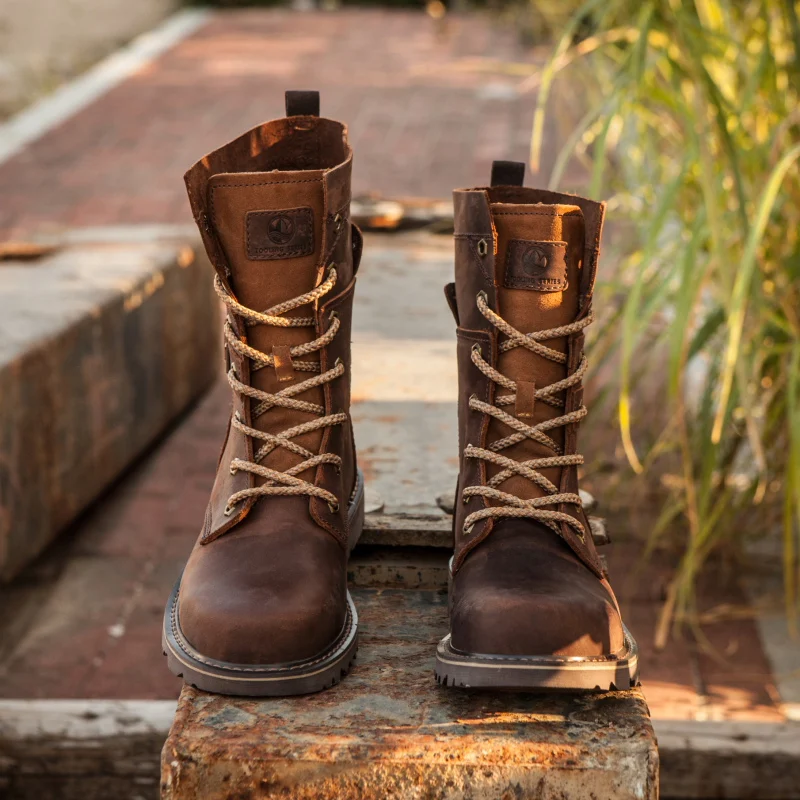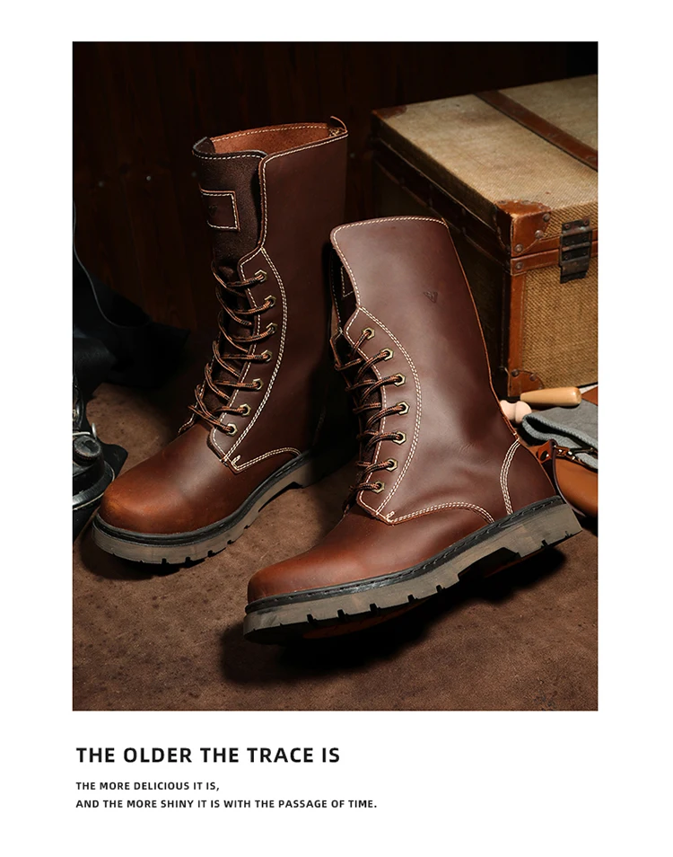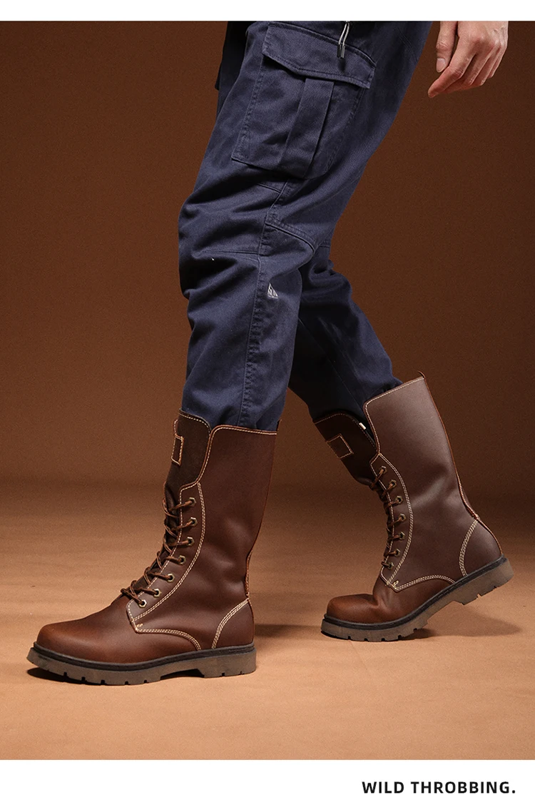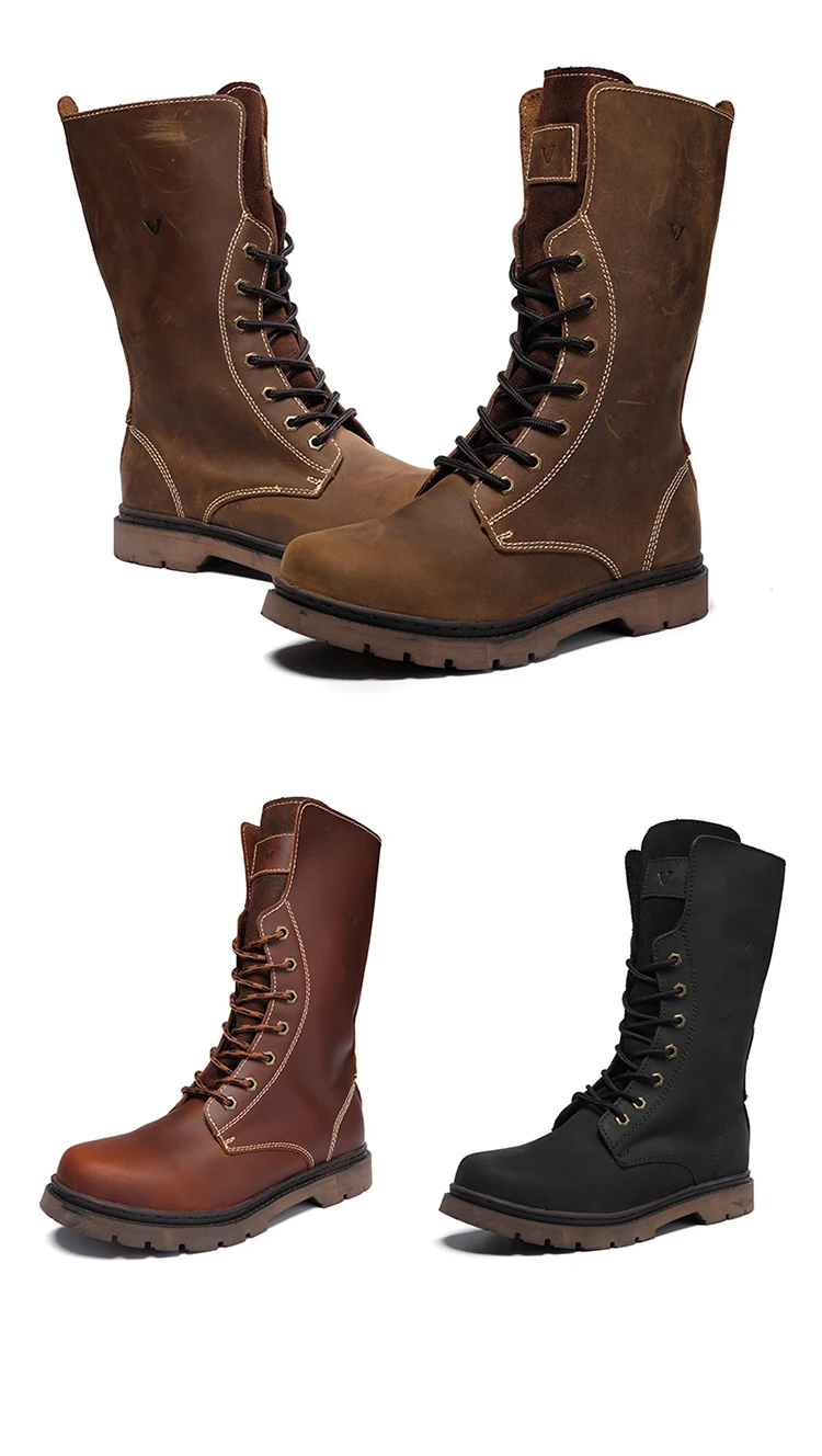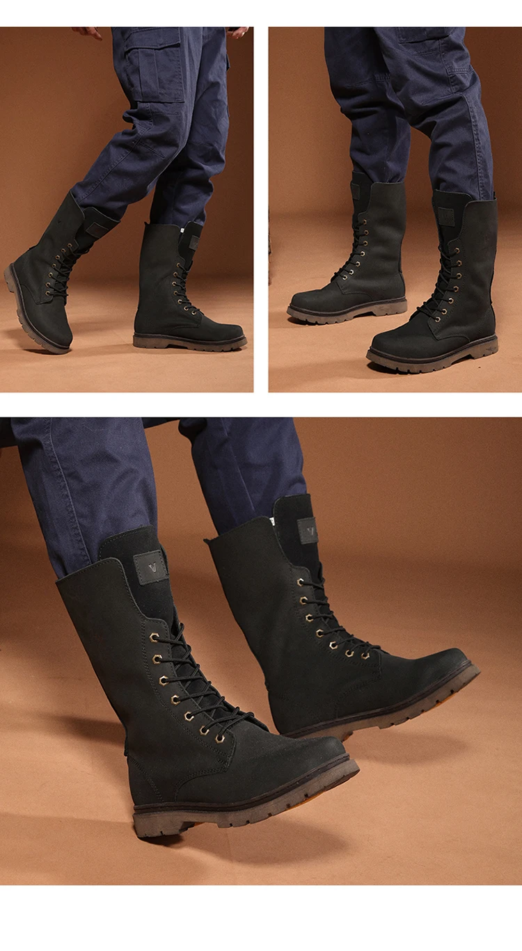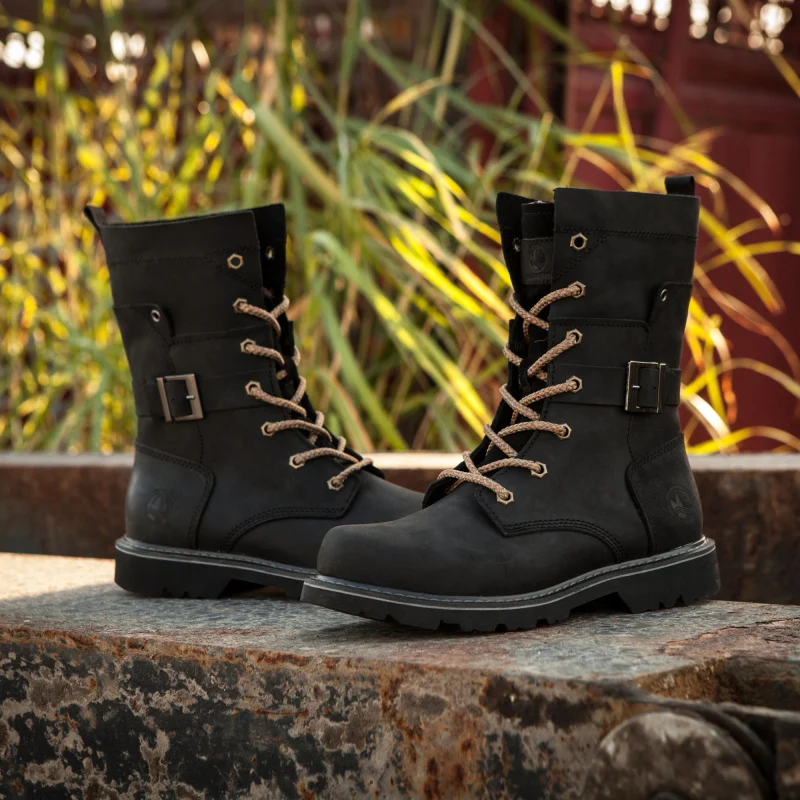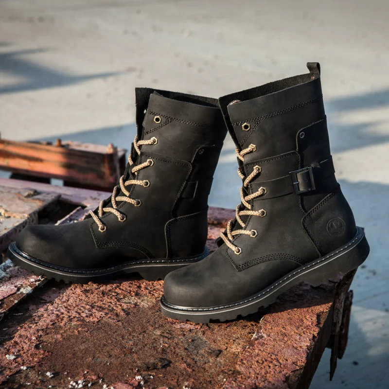Botas de senderismo de cuero para hombre, botas de motocicleta, botas de combate de trekking impermeables, botas Punk con cinturón gótico, zapatos para hombre, zapatillas tácticas