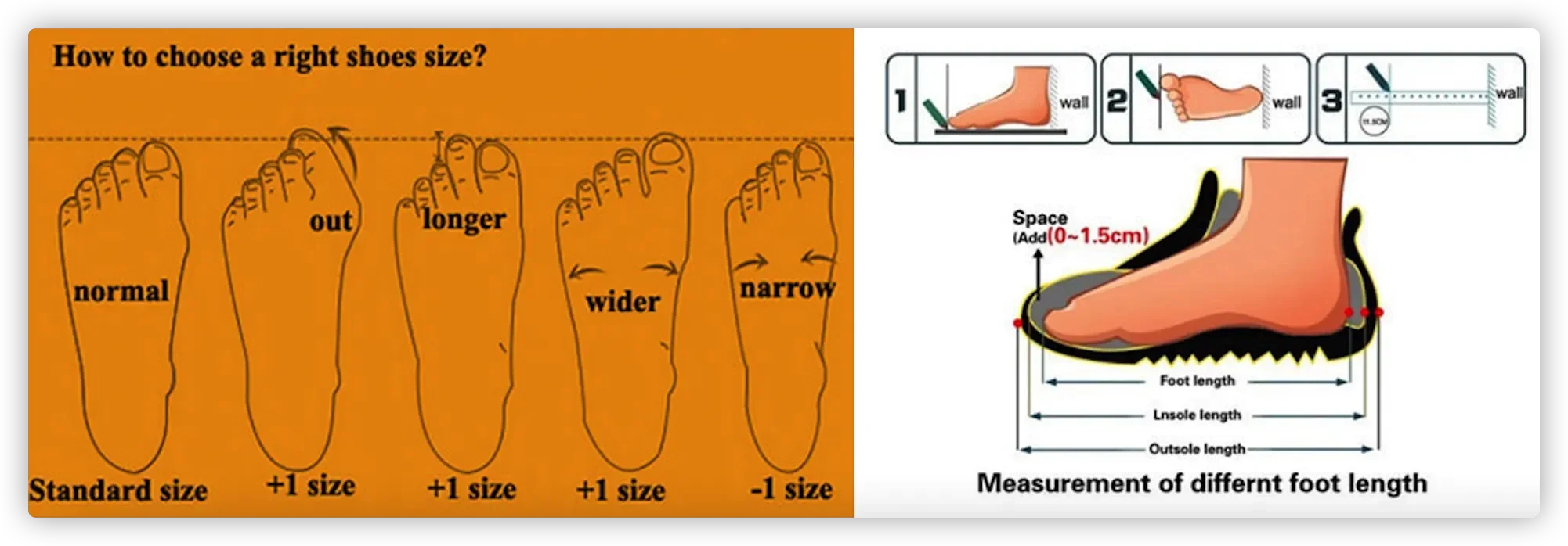 2. Si tu pie es grueso o ancho, te sugerimos que elijas una talla más grande. Si no estás seguro, ponte en contacto con nosotros.