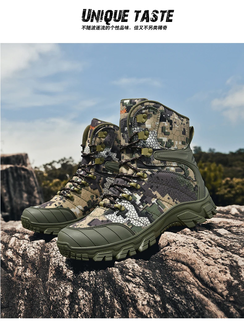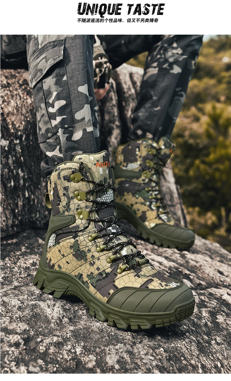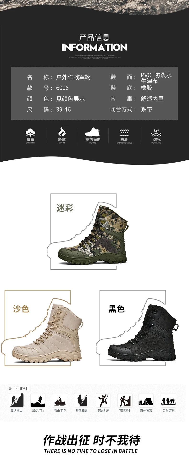 Botas militares de senderismo: botas de caza tácticas antideslizantes y resistentes al desgaste para entrenamiento al aire libre y ejercicios de campo