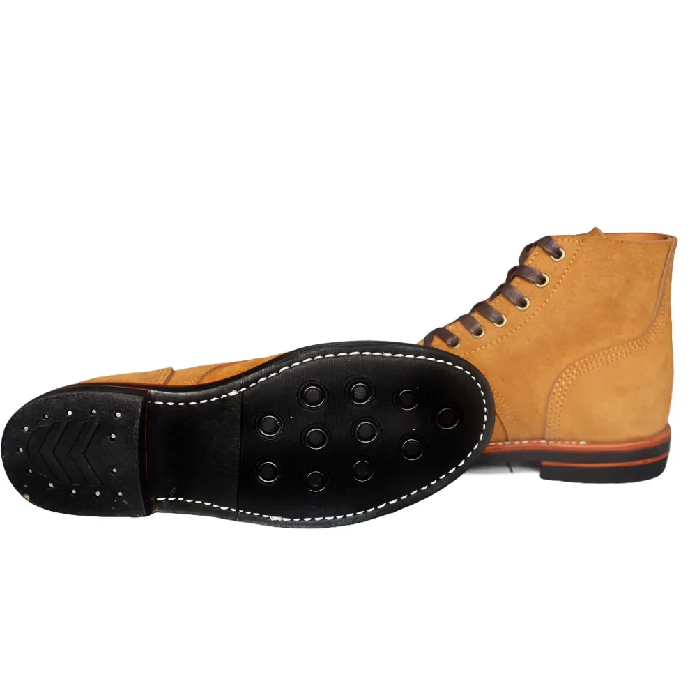 Talón: cuero real, planta de curtido, talón de goma superpuesto, y con clavos de acero Lengua: lengua de una pieza contra el polvo, botas de arena detrás no dentro, la punta del zapato es transpirable en el interior de cuero de vaca. El pelaje es suave y cómodo, con buenos pies y sin presión con vacas crudas o lavadas.