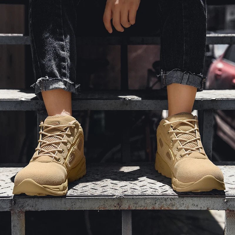 Botas tácticas para hombre, botas militares para hombre, zapatos de trabajo bajos con cordones impermeables para el desierto militar, botines para exteriores