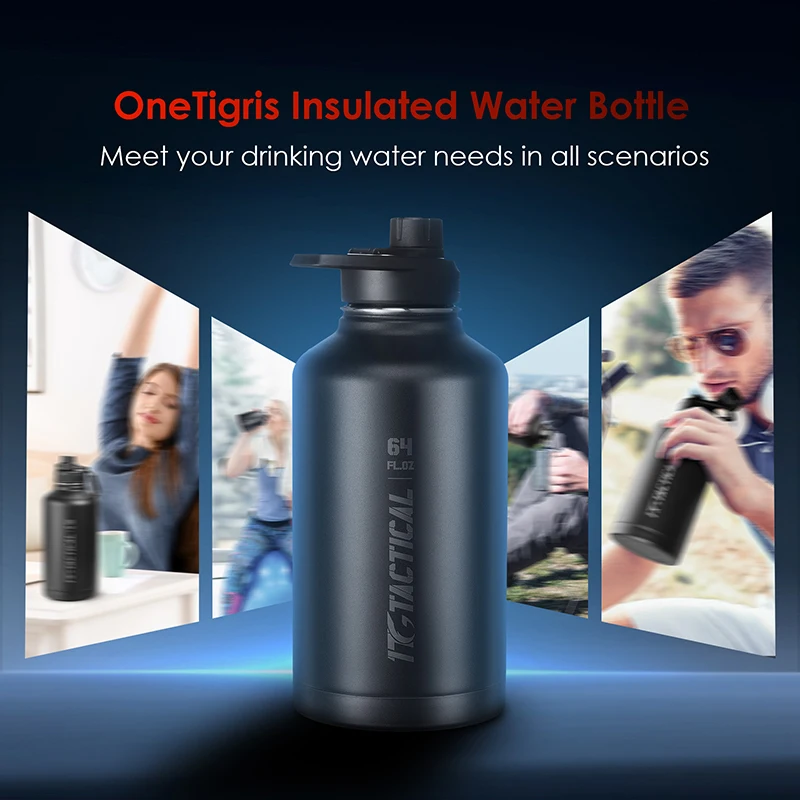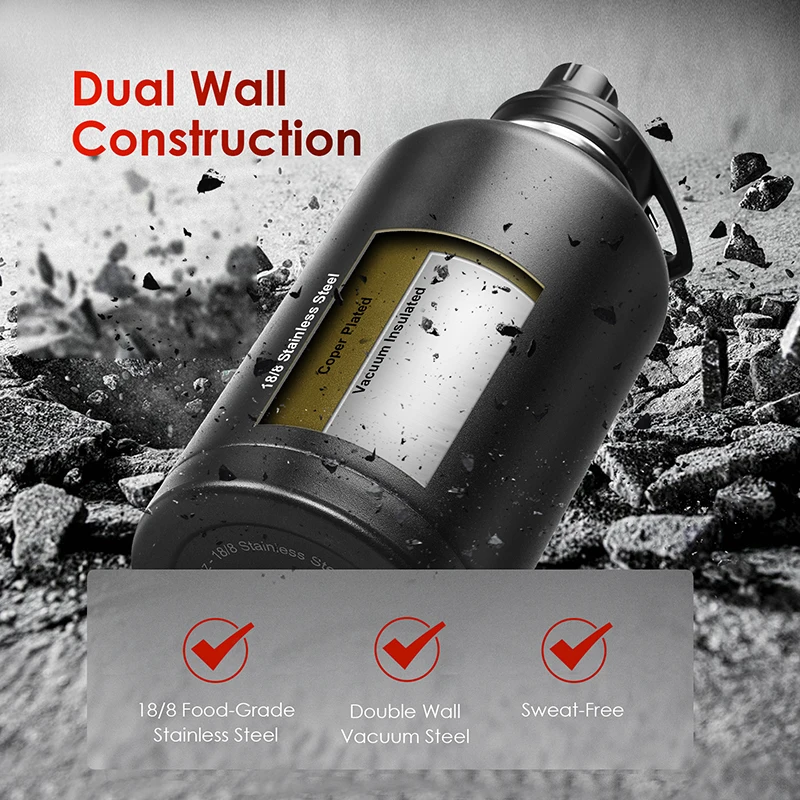 【24 horas de calor, 48 horas de frío】Nuestras botellas de agua de acero inoxidable con aislamiento al vacío, con una construcción de acero inoxidable 304 de doble capa, mantienen las bebidas calientes durante 1 día y frías durante 2 días, lo que las hace aptas para la hidratación y aventuras al aire libre en movimiento.24 horas de calor, 48 horas de frío