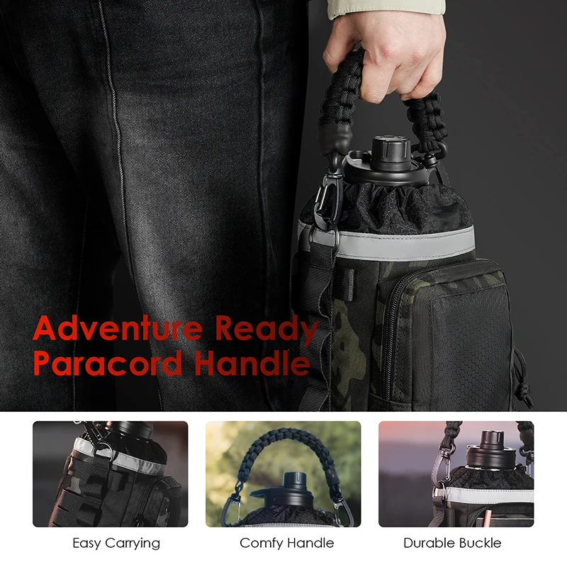 【Un paquete completo】Mejora tu experiencia de hidratación con nuestra botella de agua y los accesorios incluidos.Desde 3 tapas diferentes y 2 pajitas para un uso versátil con cualquier bebida, hasta un cepillo de limpieza para facilitar el mantenimiento, lo tenemos cubierto.Además, nuestra botella de agua también viene con una bolsa espaciosa y un asa de paracord que se puede usar cruzada o en la mano, con bolsillos adicionales para guardar artículos pequeños que necesita para el día, como teléfonos celulares, llaves y cebollas o dinero en efectivo.