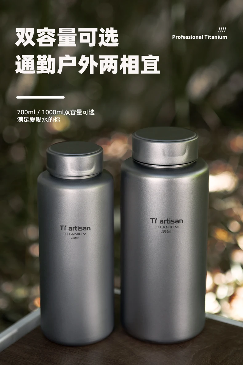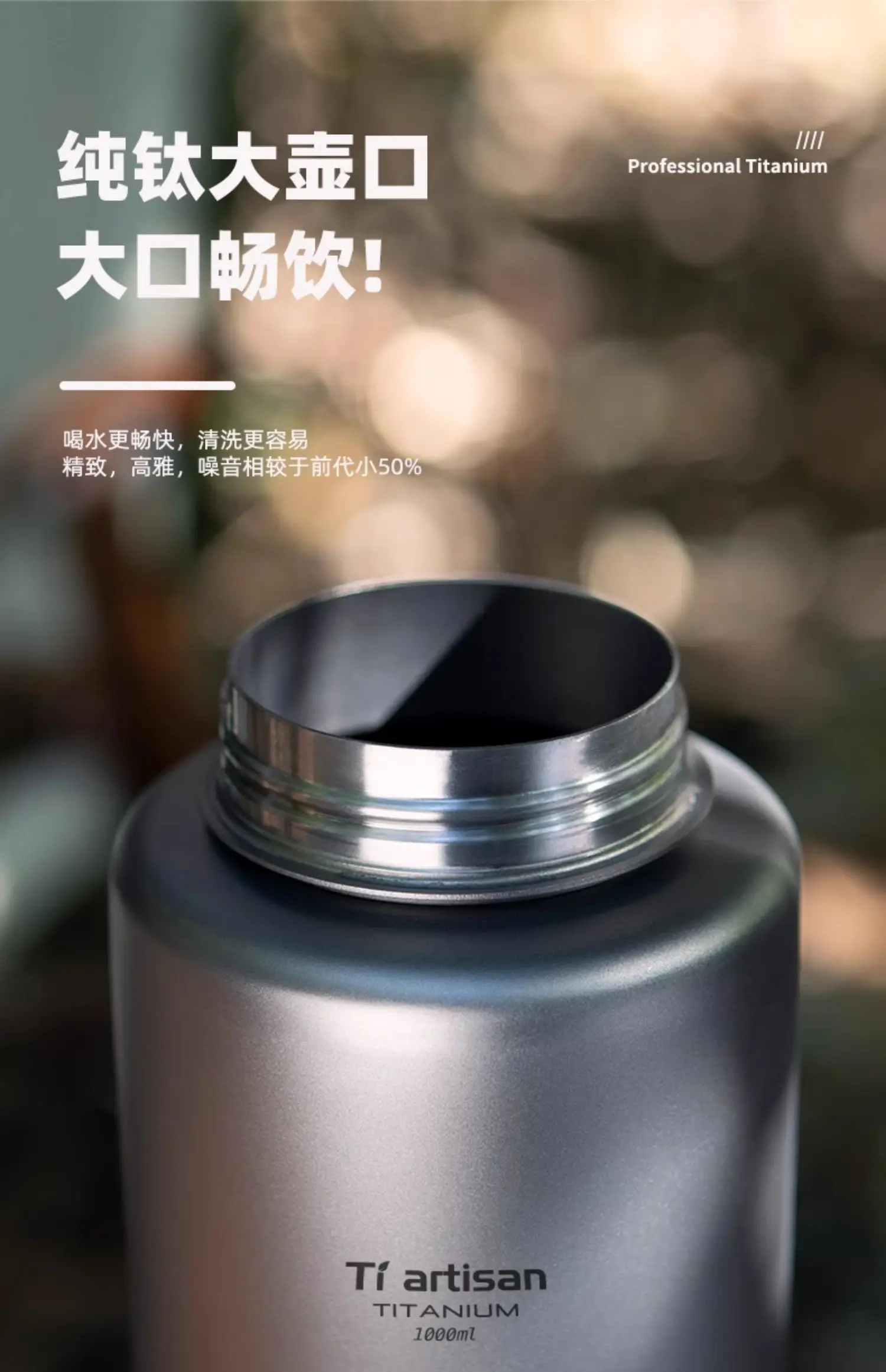 Botella de agua de boca ancha de titanio puro, taza de agua portátil para exteriores, botella de agua deportiva de gran capacidad para viajes en coche