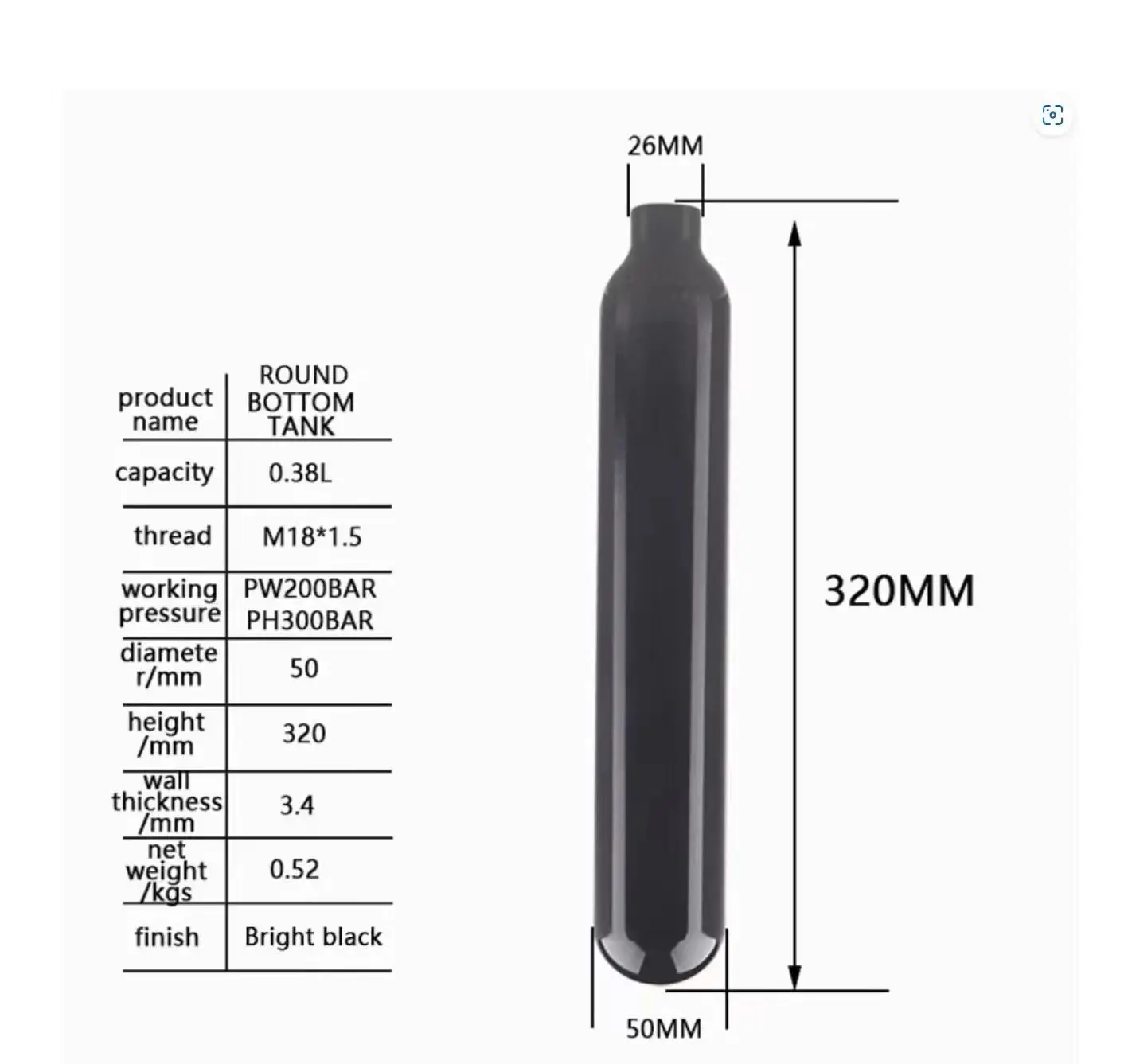 Desafortunadamente, la indicación de 20Mpa o 4500psi es muy confusa; 20Mpa es solo alrededor de 3000psi. La indicación de 4500psi es la presión de prueba, que también está marcada en la botella; la presión de trabajo es de 3000psi como 200bar.