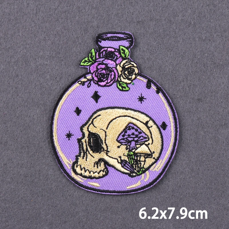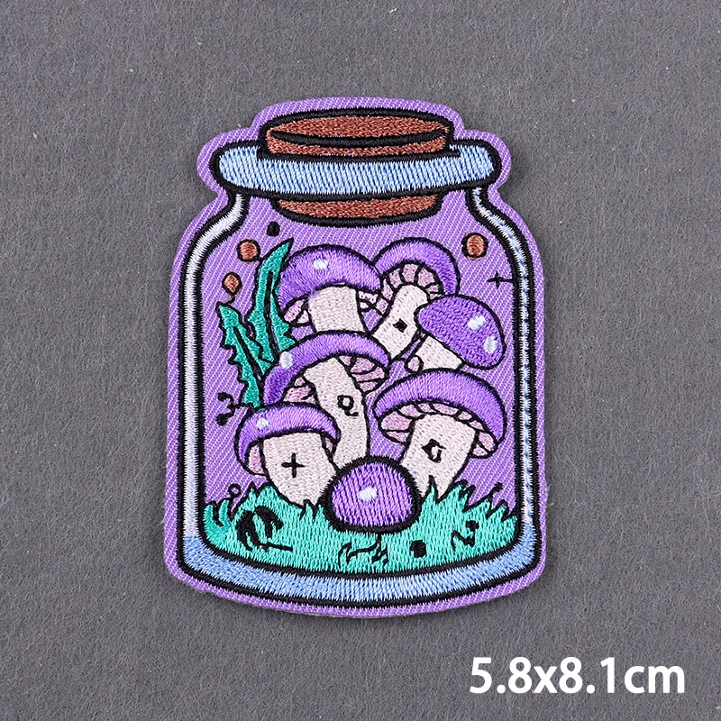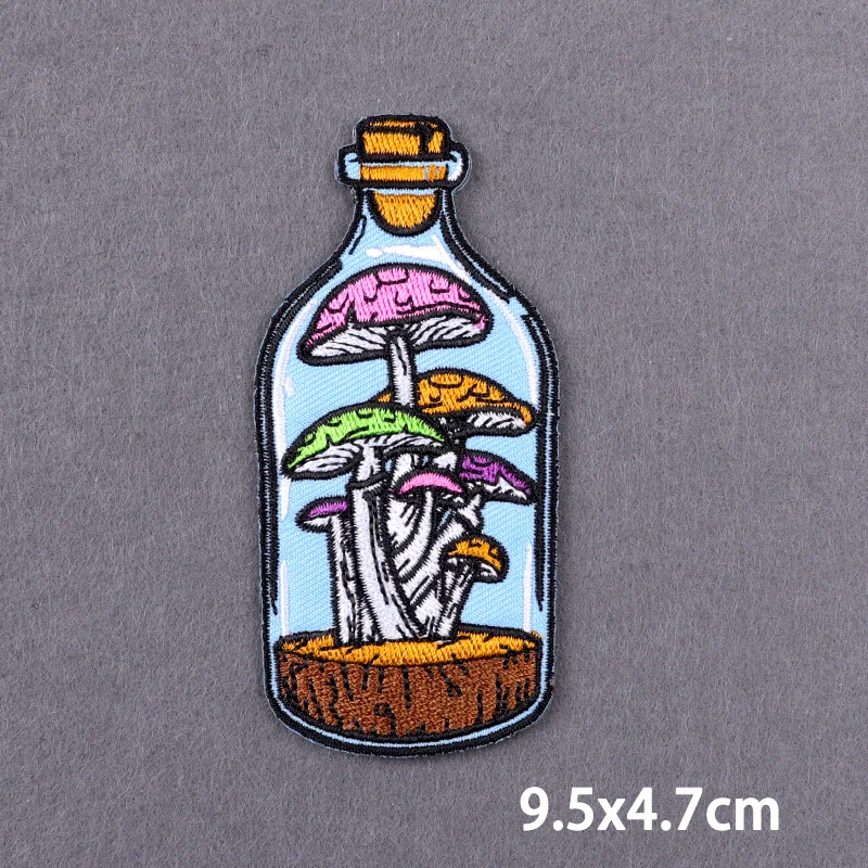 Bottle With Mushroom Patch Heart Shape Embroidery Iron On Patch For Clothing Thermoadhesive Patches On Clothes DIY Stripe Badge