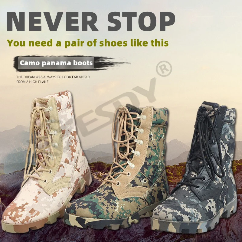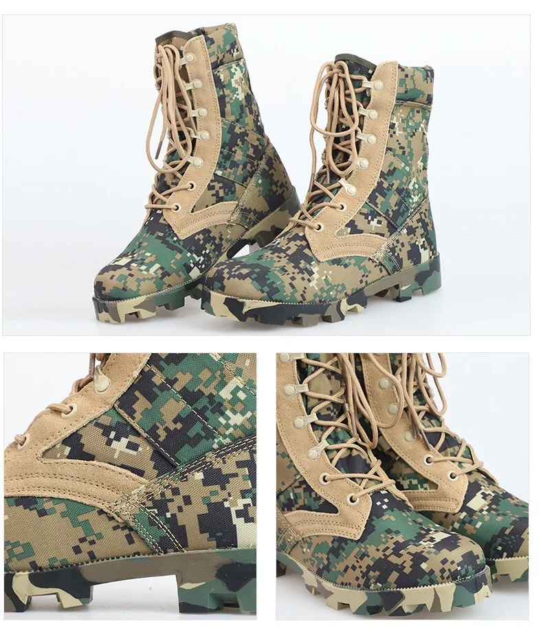 Botines de camuflaje para hombre, suela de Panamá de cuero genuino para exteriores, botas de combate tácticas, bota de trabajo de caza, zapato de senderismo para hombre 47