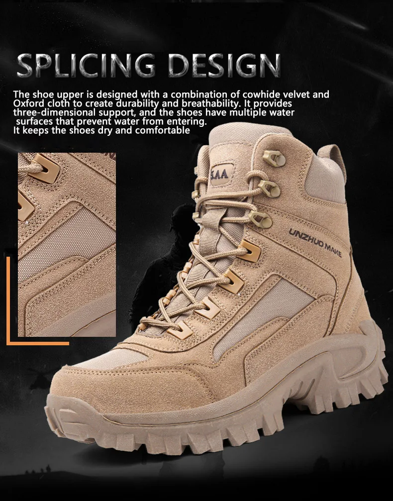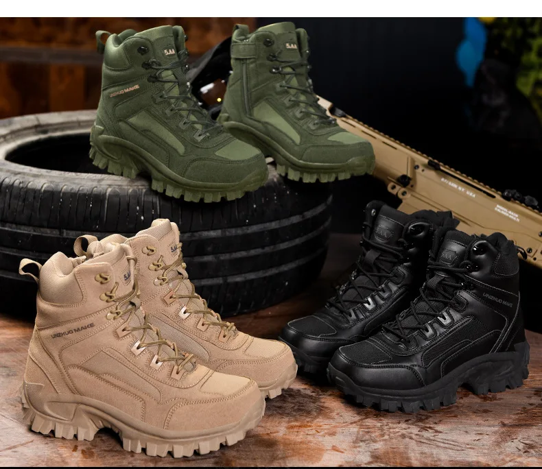 Botas del ejército, botines de combate para hombre, botas militares tácticas militares, zapatos de hombre, zapatos de seguridad para el trabajo, botas de motocicleta grandes