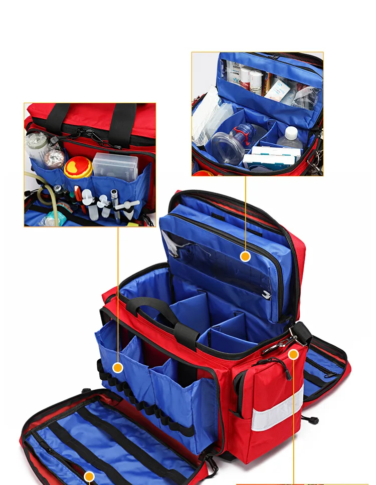 Bolsa médica de primeros auxilios Bolsa de gran capacidad para rescate de emergencia al aire libre Bolsas de viaje Oxford reflectantes impermeables vacías con múltiples bolsillos