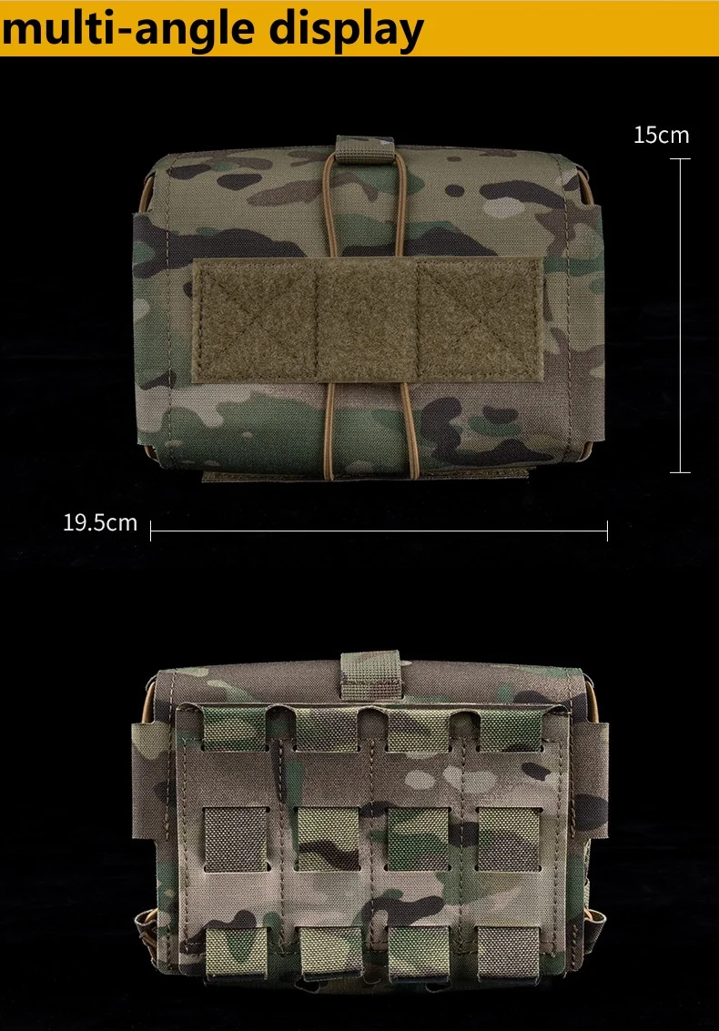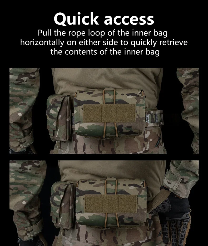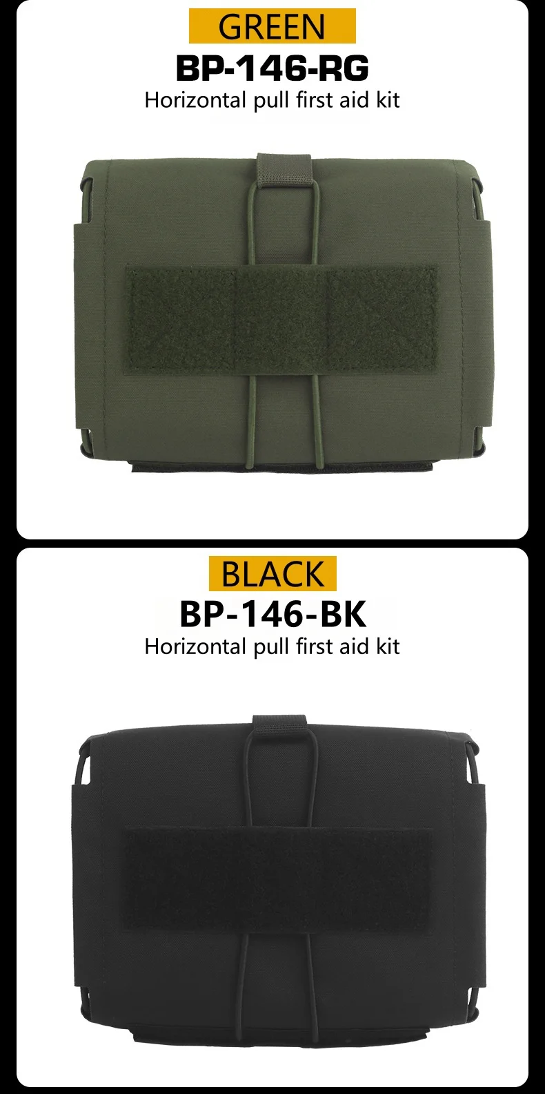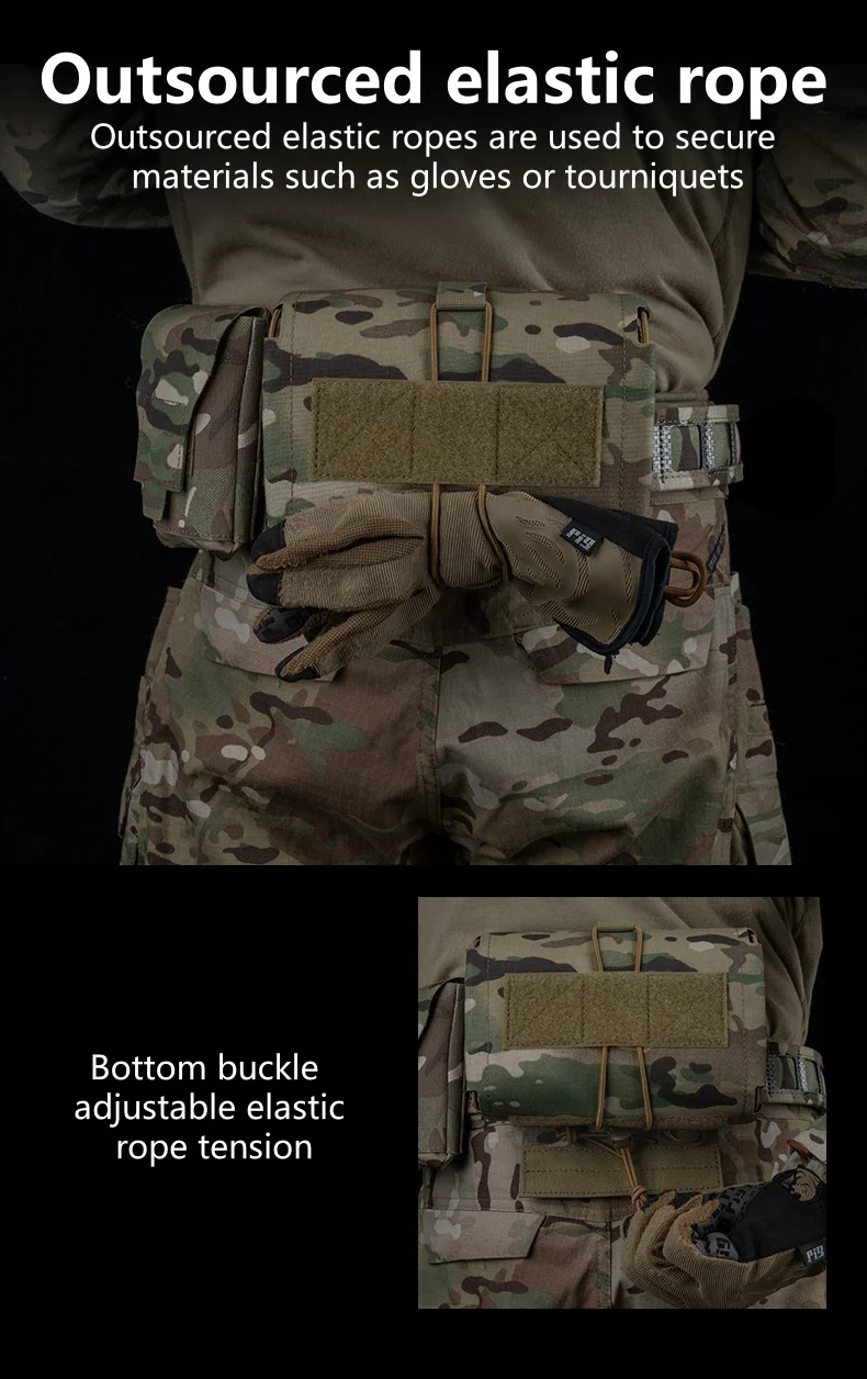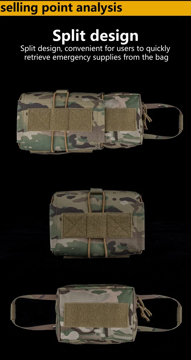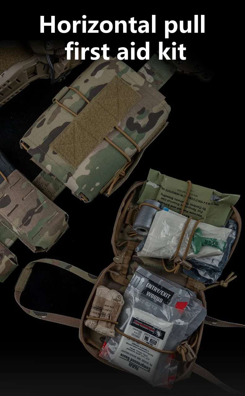 Botiquín de primeros auxilios de extracción horizontal con bolsas interiores y exteriores divididas y diseño de cuerda elástica para un desmontaje rápido y montaje MOLLE