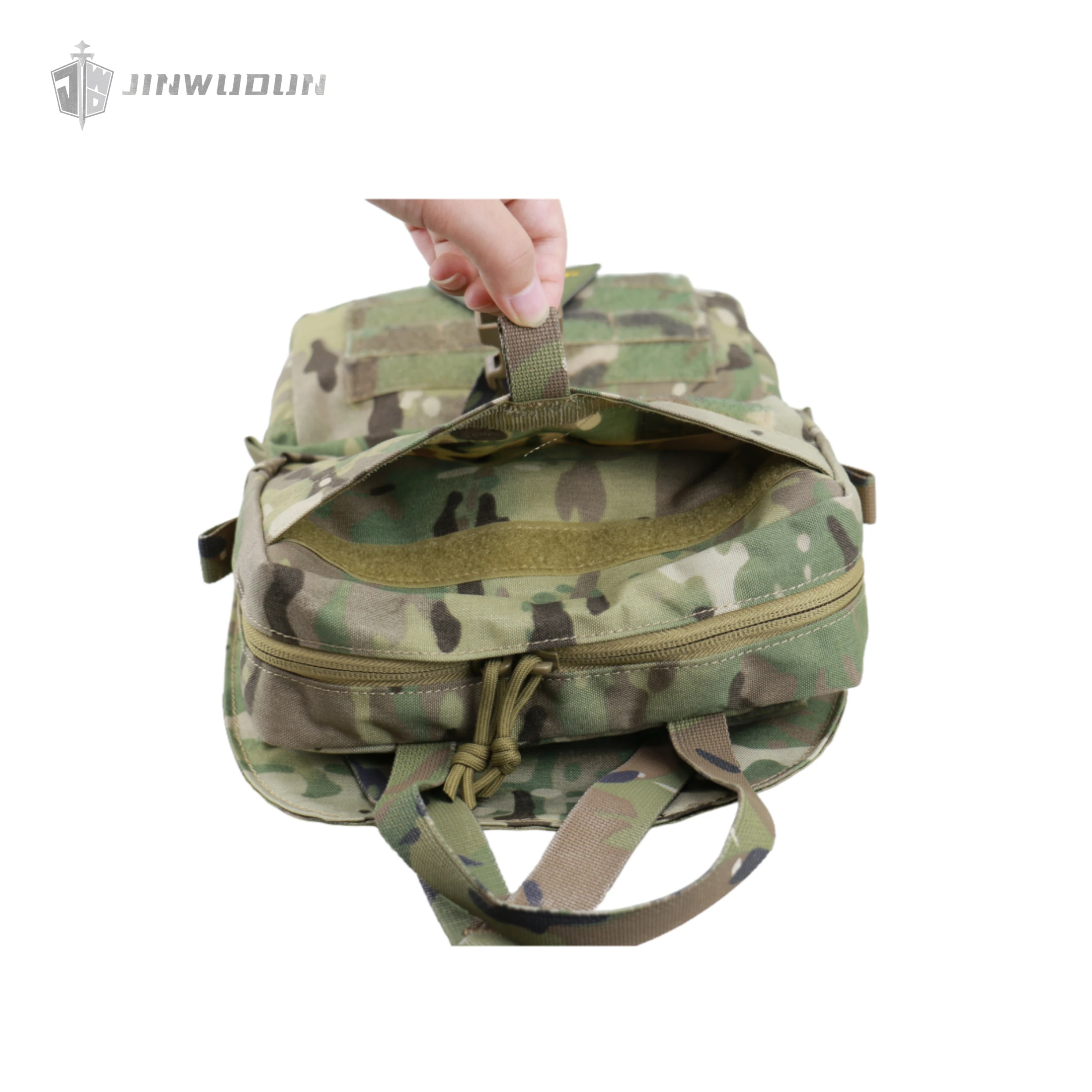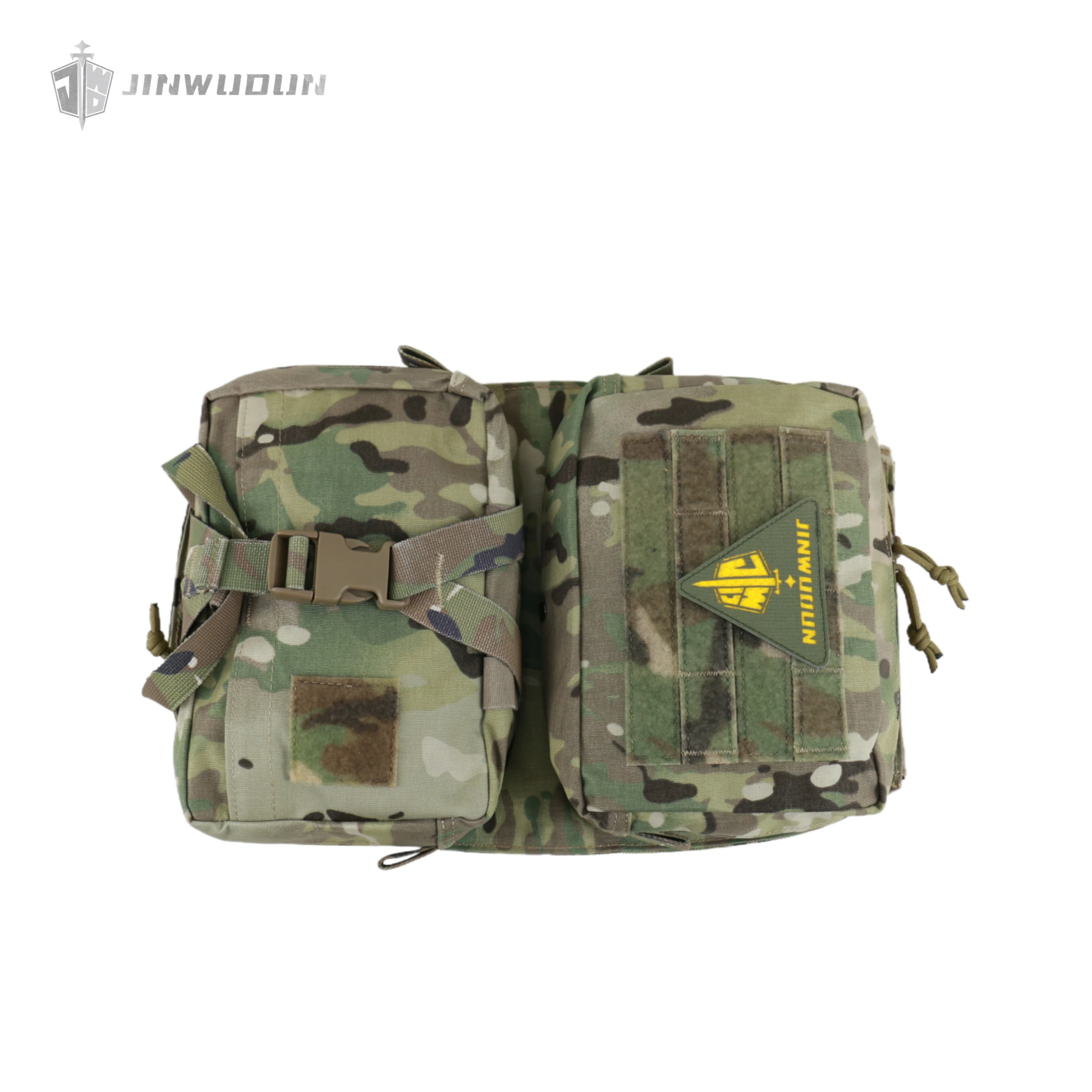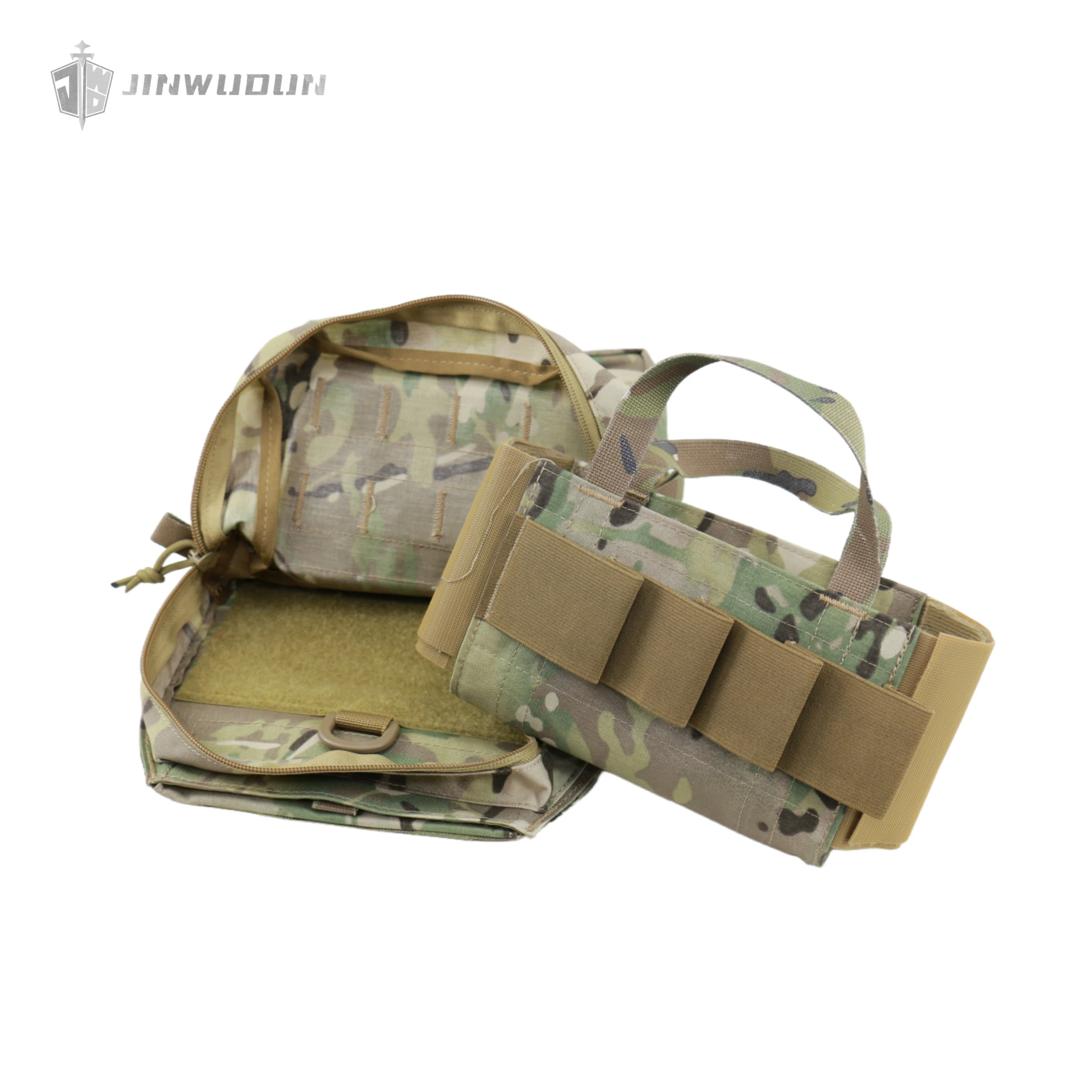 Presenta un diseño de doble zona: la parte superior está equipada con una bolsa funcional desmontable que puede contener 8 artículos de 40 mm y admite un desmontaje rápido;la parte inferior es una bolsa de emergencia desmontable con materiales de fijación elásticos incorporados, que cuenta con un asa y bandas elásticas, que se pueden quitar rápidamente de la parte posterior para tratamiento y despliegue de emergencia.