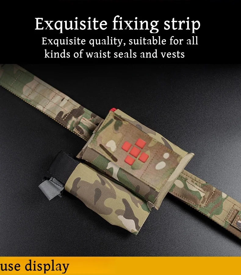 Forma compacta de llevar un IFAK en la mochila o al cinto. La mayor pega que le veo es el velcro interior que mantiene el paquete compacto ejerce por otro lado mucha resistencia para sacar el contenido.