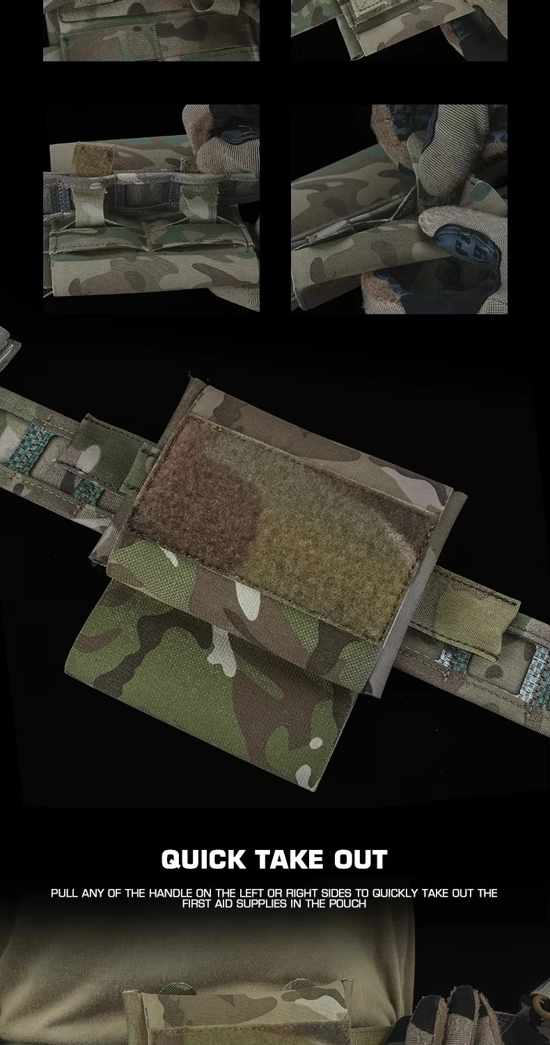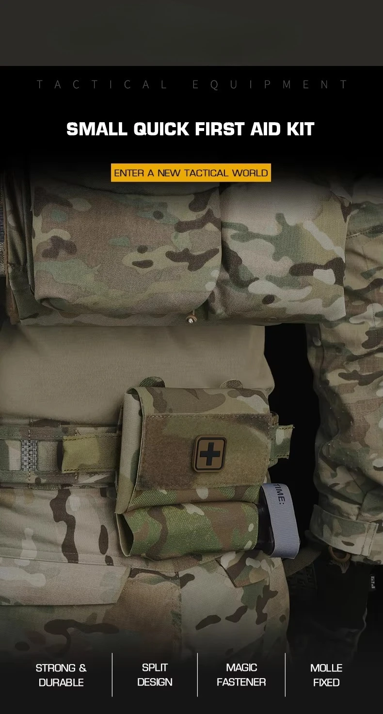 Botiquín de primeros auxilios MOLLE de nailon resistente al agua Tiras reflectantes Sistema de liberación rápida Compartimento de doble división Bolsa médica de emergencia para caza, senderismo, camping, airsoft