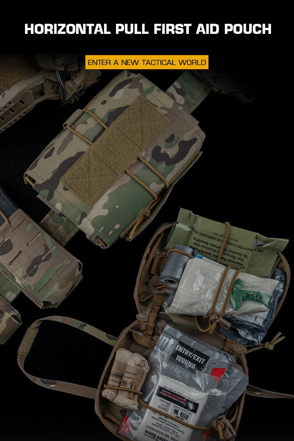 Botiquín táctico de primeros auxilios MOLLE, bolsa médica de despliegue rápido, bolsa Horizontal de tracción rápida para caza, Camping, supervivencia, riñonera de seguridad