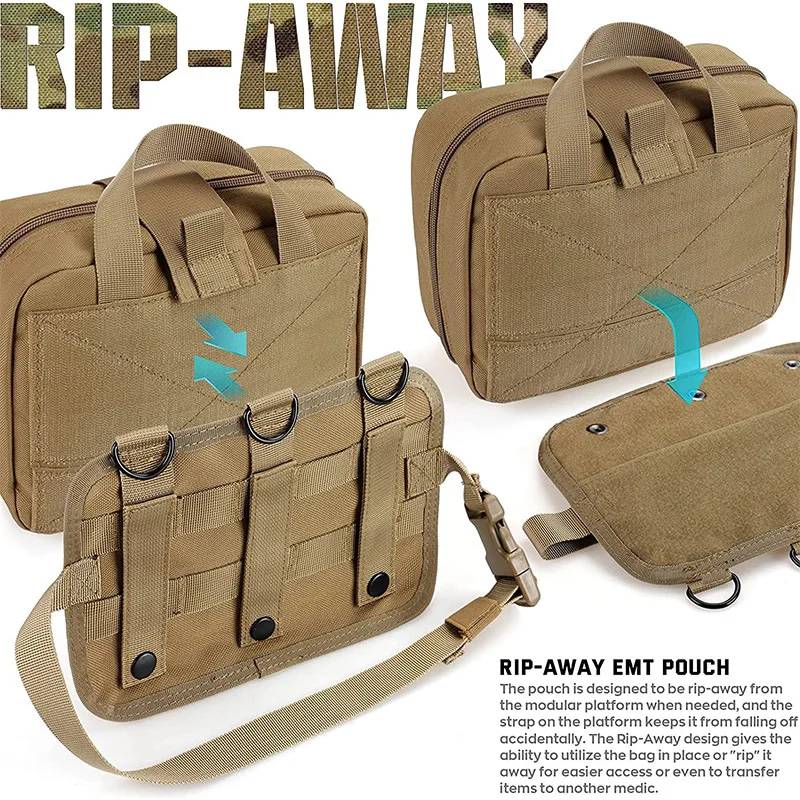 2.Apto para sistemas de correas MOLLE: diseñada pensando en la versatilidad, la bolsa de almacenamiento para traumatismos se puede conectar fácilmente a un chaleco, mochila, cinturón o mochila.Esta compatibilidad permite a los usuarios personalizar la configuración de su equipo y sujetar la bolsa de supervivencia de forma segura a su equipo preferido, asegurando un acceso conveniente a los artículos esenciales.