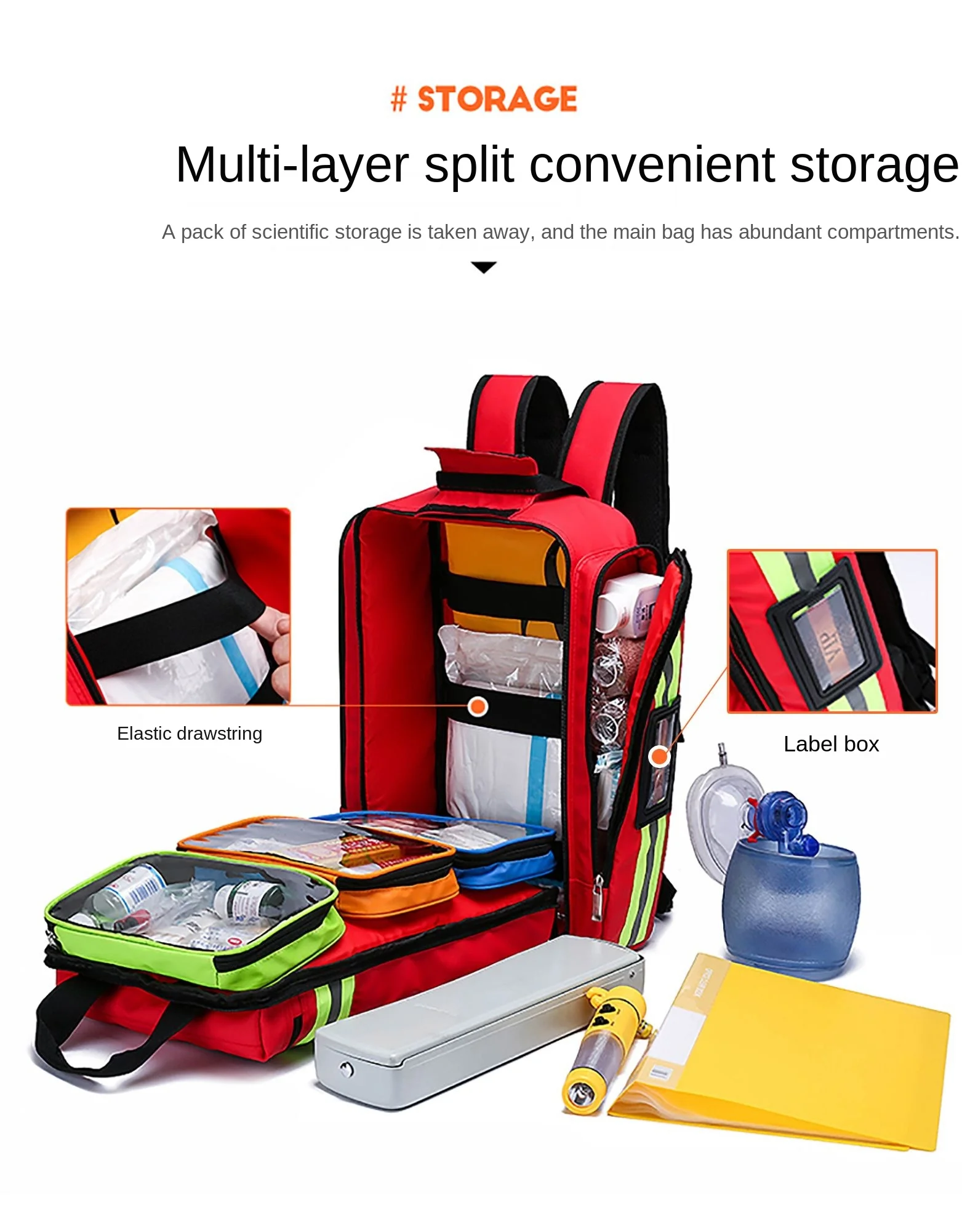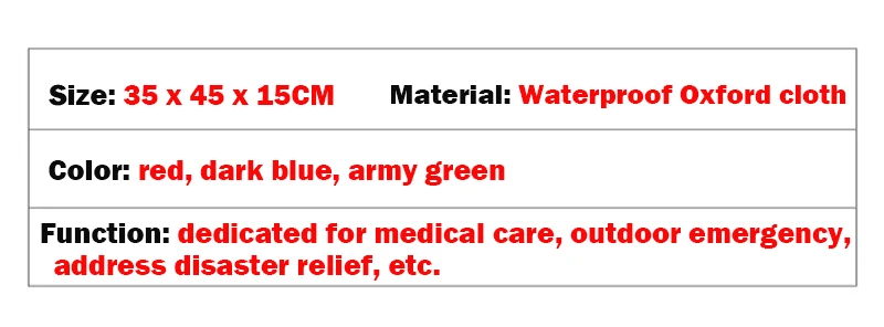 Botiquines de primeros auxilios Mochilas de rescate de emergencia Almacenamiento ordenado de gran capacidad Kits de supervivencia para acampar al aire libre Kits médicos