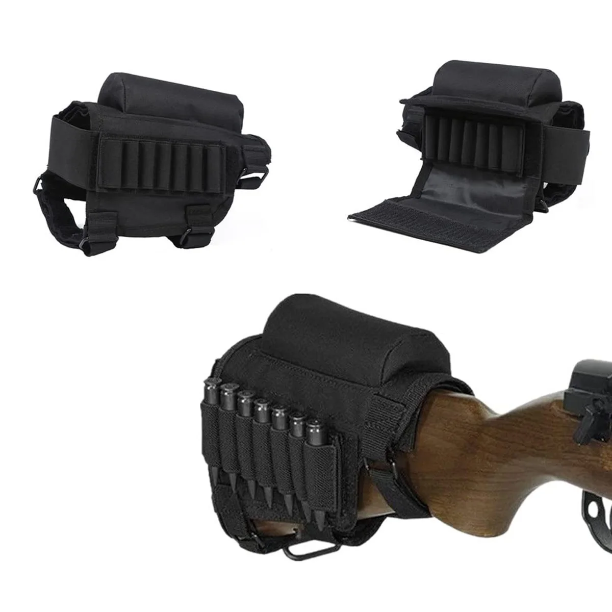 【Resto ajustable para las mejillas del rifle 】Diseño de correa de anillo de gancho, 3 correas de hebilla ajustables, fácil de instalar y descargar, apto para la mayoría de los rifles.