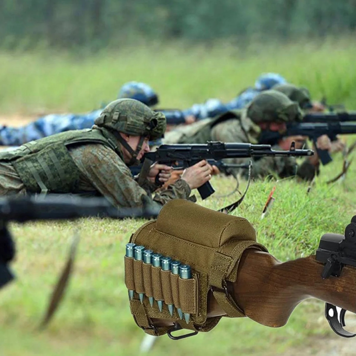 【Elevador de mejillas ambidiestro para rifles】Con 7 soportes de munición redondos extraíbles para 300 308 Winmag.