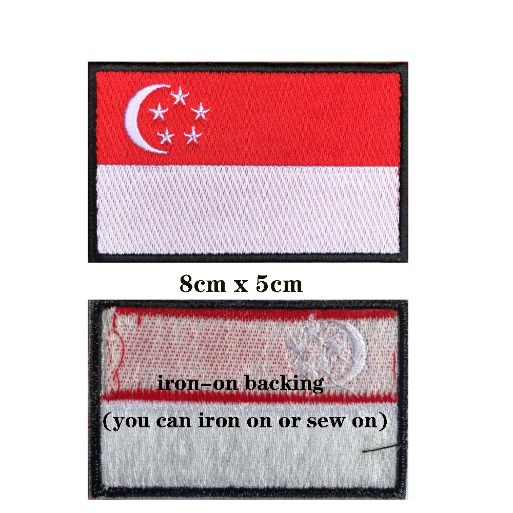 Brazalete de bandera de Singapur, parche bordado de Velcro o planchado, insignia de tela, raya Moral militar, 1 unidad