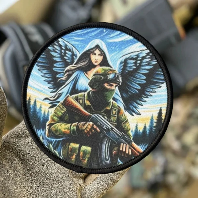 Brazalete con estampado de insignia militar de moral, parche táctico de "angeles y soldados", parches para ropa, parche con gancho, pegatina para mochila