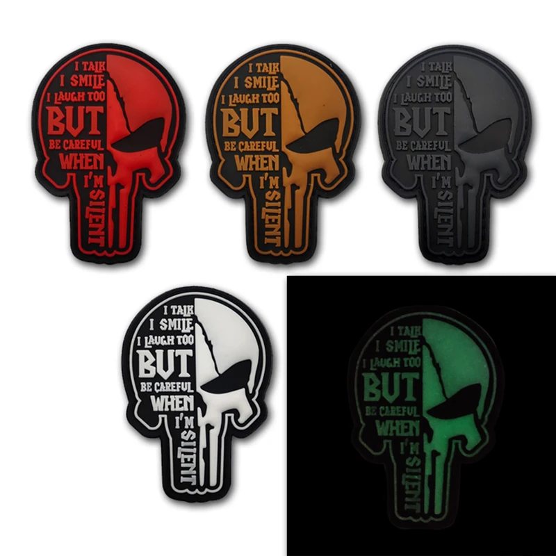 Brazalete luminoso de PVC con patrón de Calavera, Parche de velcro, insignia de moral, parche para mochila, ropa, sombrero, accesorios, pegatina