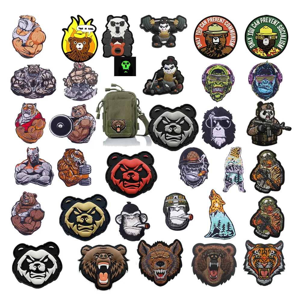Brazalete mágico de oso táctico militar CP, insignia de moral táctica de tigre de camuflaje, chaleco de oso muscular, parches de mochila para ropa