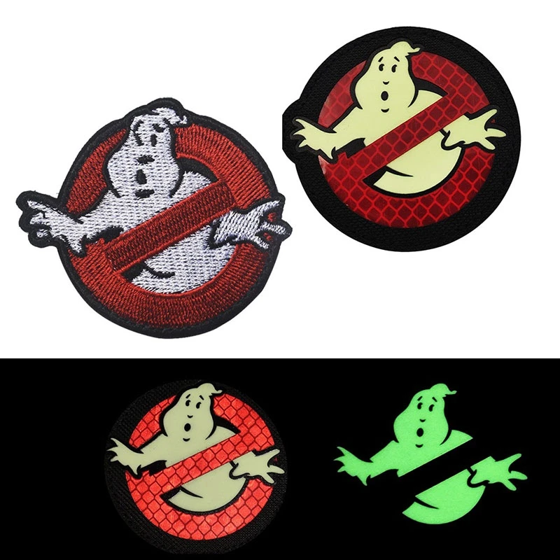 Brazalete reflectante con luz nocturna de cazafantasmas de Halloween, parche bordado con gancho y bucle, insignia para sombrero y mochila Diy, parche de moral