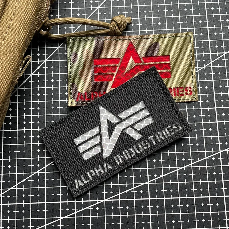 Brazalete táctico con emblema moral reflectante Alpha ruso tallado con tres barras parche de gancho y bucle pegatina para mochila parches militares