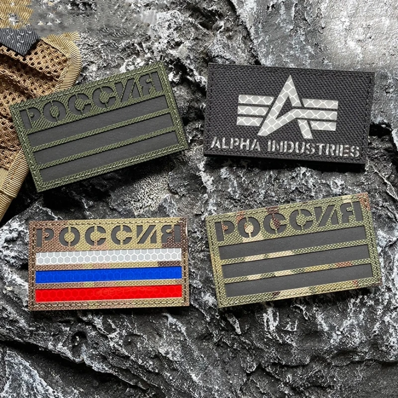 Brazalete táctico con emblema moral reflectante Alpha ruso tallado con tres barras parche de gancho y bucle pegatina para mochila parches militares